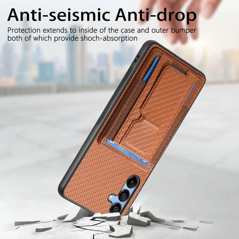 For Samsung Galaxy A14 4G/5G Carbon Fiber Fold Stand Elastic Card Bag Phone Case(Brown)