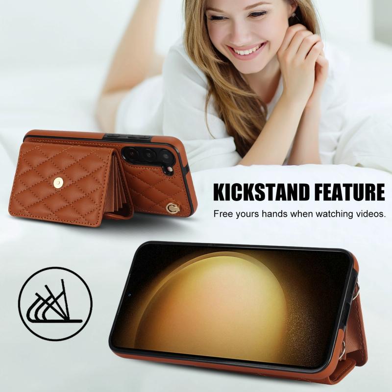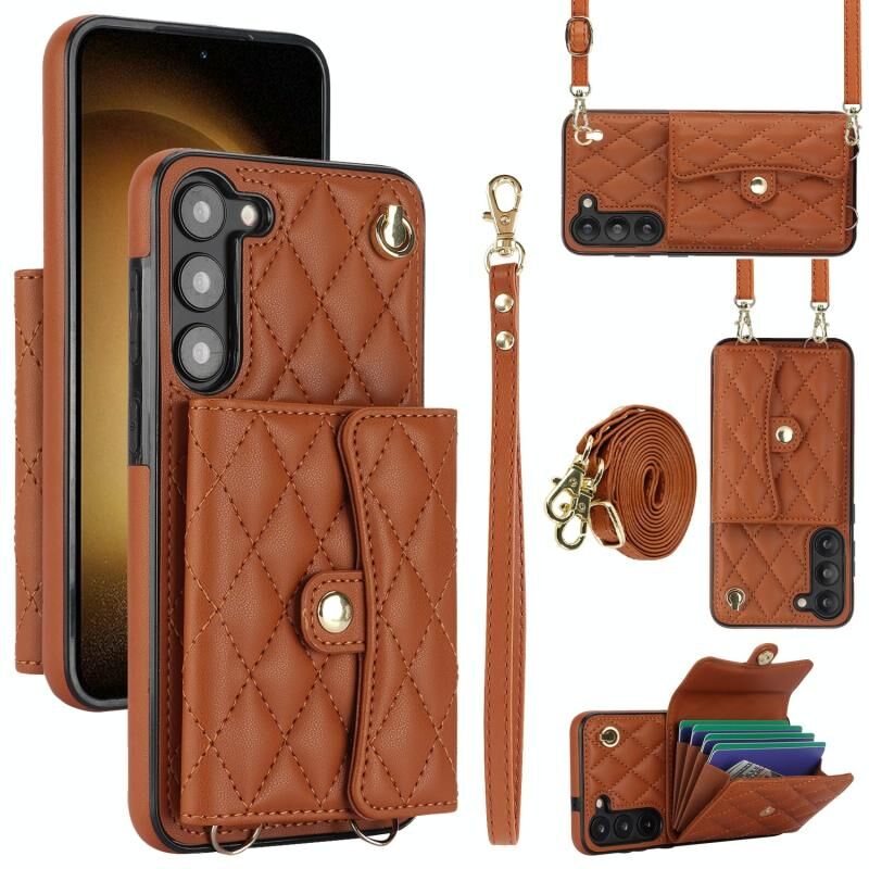 For Samsung Galaxy A14 4G/5G Crossbody Rhombic Horizontal Wallet Leather Phone Case(Brown)