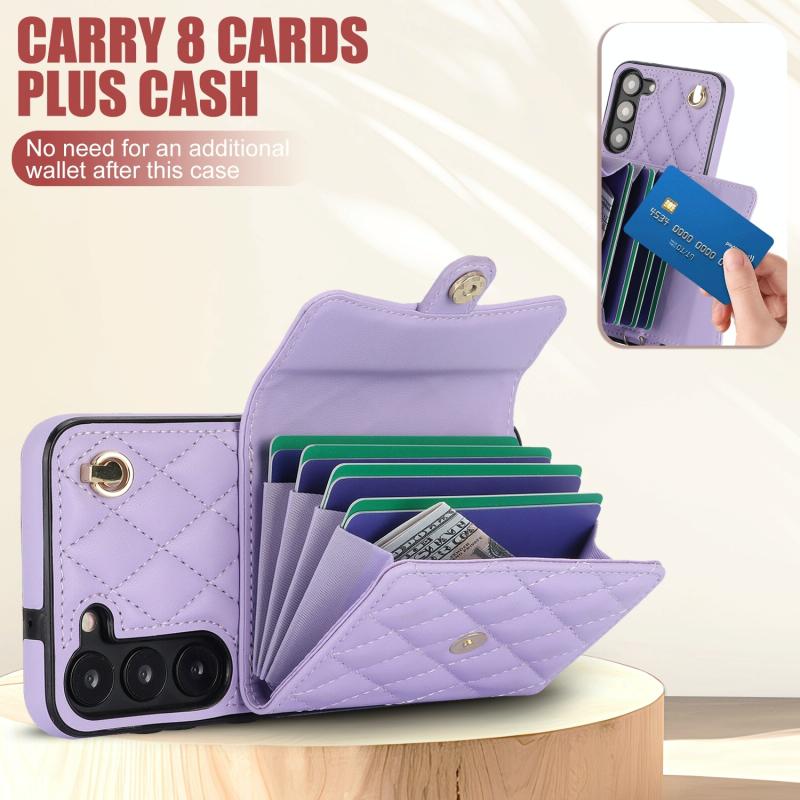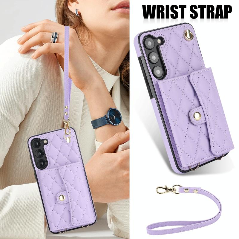 For Samsung Galaxy A14 4G/5G Crossbody Rhombic Horizontal Wallet Leather Phone Case(Purple)