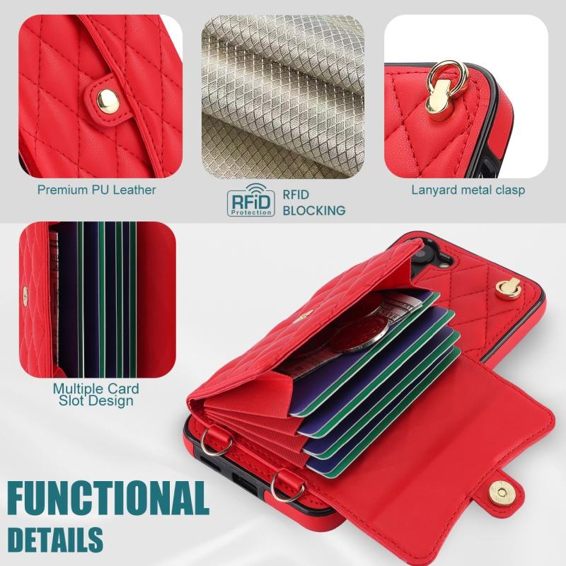 For Samsung Galaxy A14 4G/5G Crossbody Rhombic Horizontal Wallet Leather Phone Case(Red)