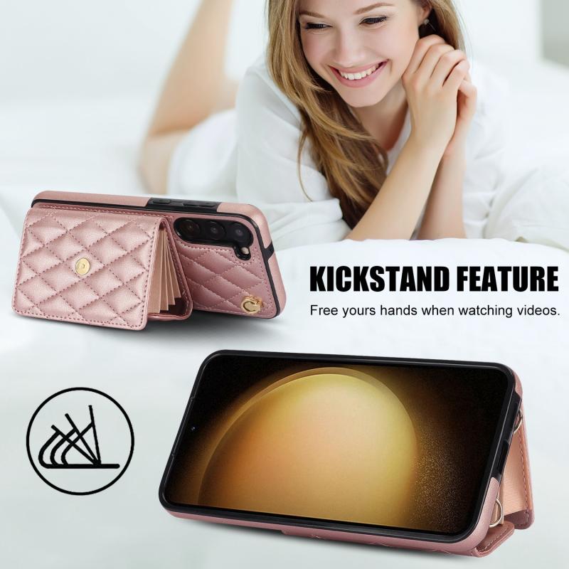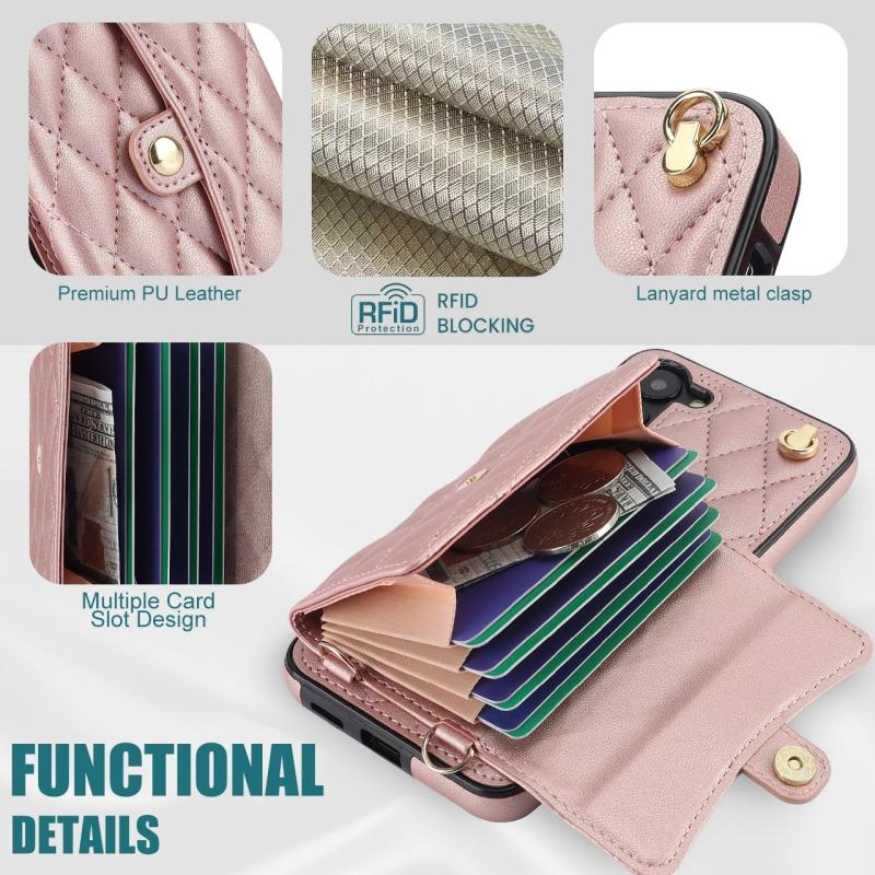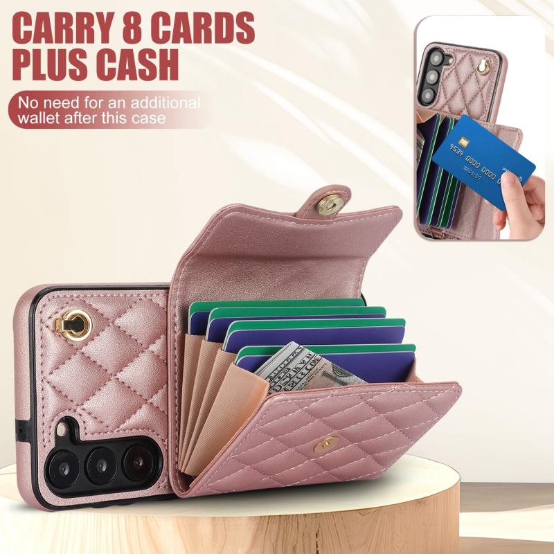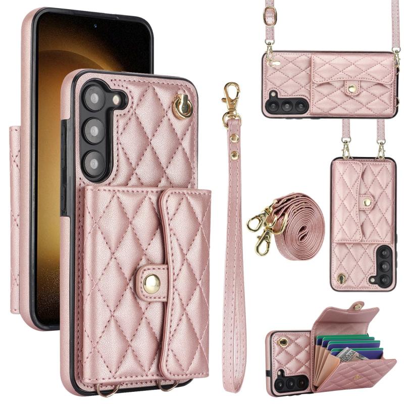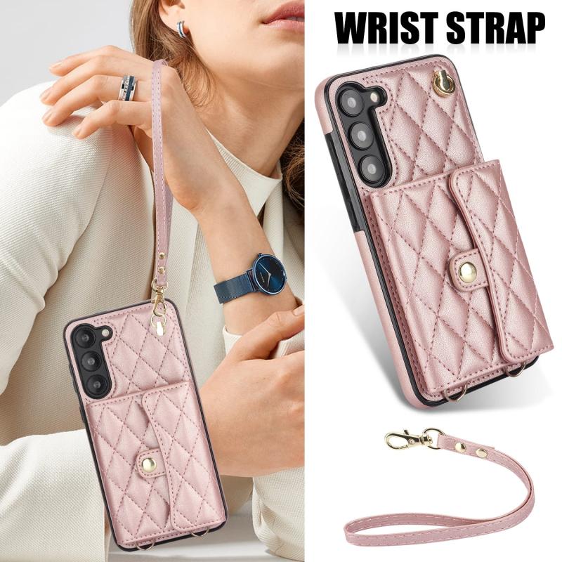 For Samsung Galaxy A14 4G/5G Crossbody Rhombic Horizontal Wallet Leather Phone Case(Rose Gold)