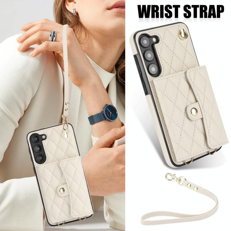 For Samsung Galaxy A14 4G/5G Crossbody Rhombic Horizontal Wallet Leather Phone Case(White)