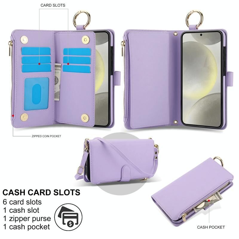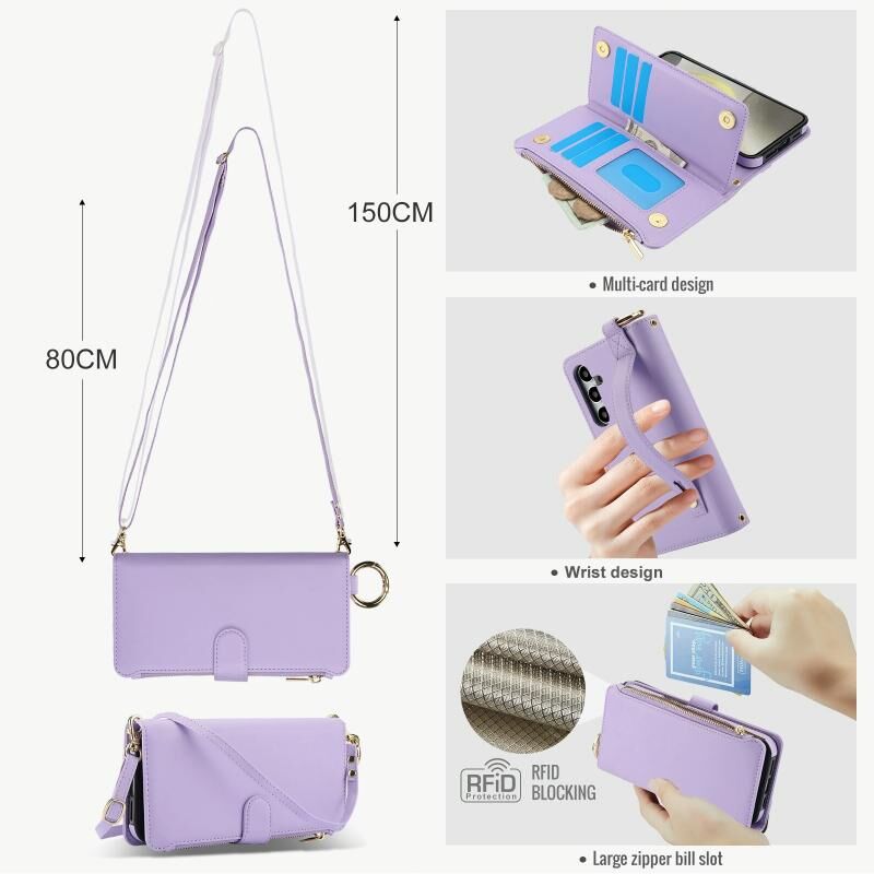 Για Samsung Galaxy A14 4G / 5G Crossbody Ring Πολυλειτουργική θήκη τηλεφώνου δερμάτινο πορτοφόλι (μωβ)