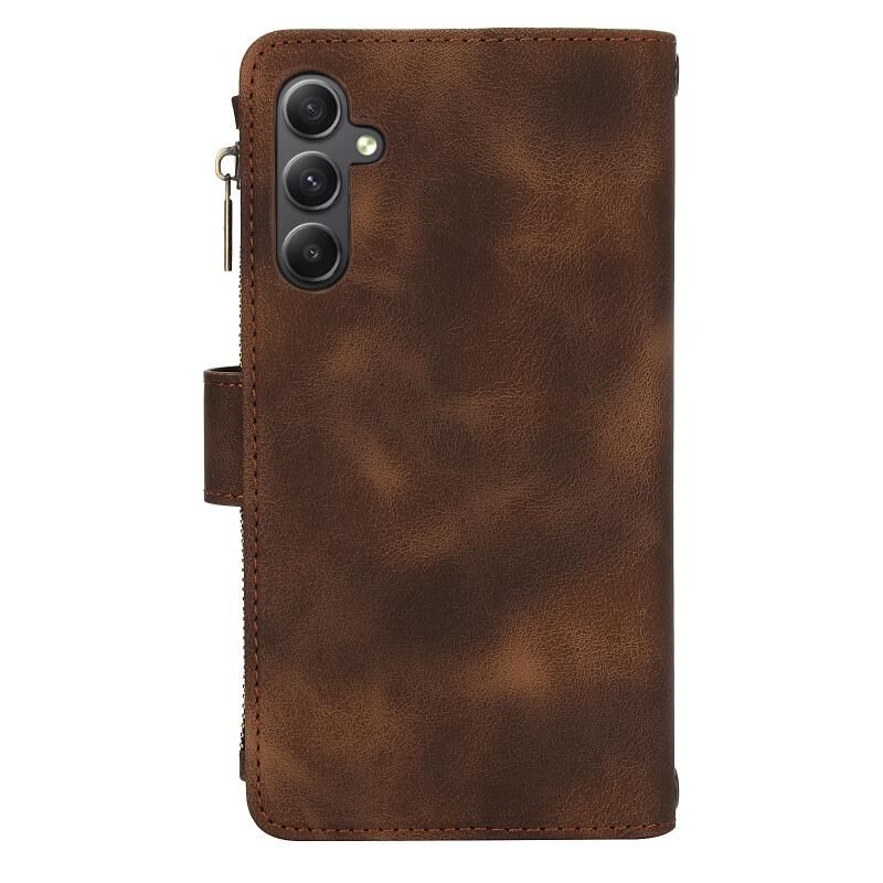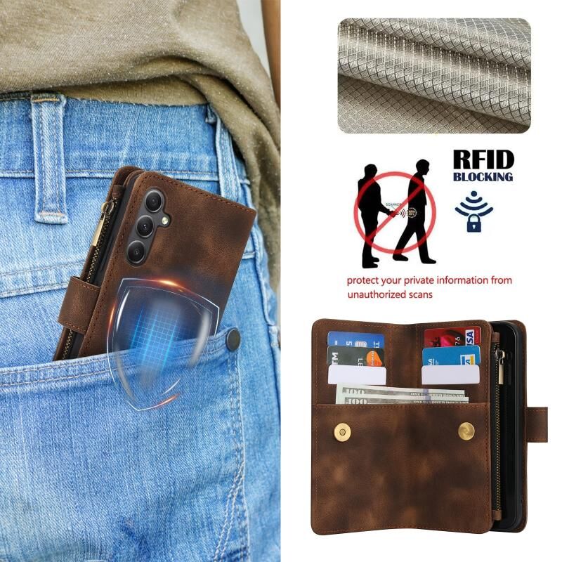 Για Samsung Galaxy A14 4G / 5G Dream 9-Card φερμουάρ πορτοφόλι RFID δερμάτινη θήκη τηλεφώνου με κορδόνι (καφέ)