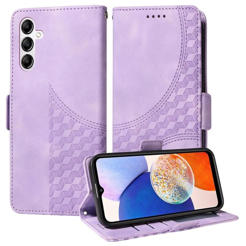 Για Samsung Galaxy A14 4G / 5G ανάγλυφο ρόμβος αστερόεσσα δερμάτινη θήκη τηλεφώνου (μωβ)