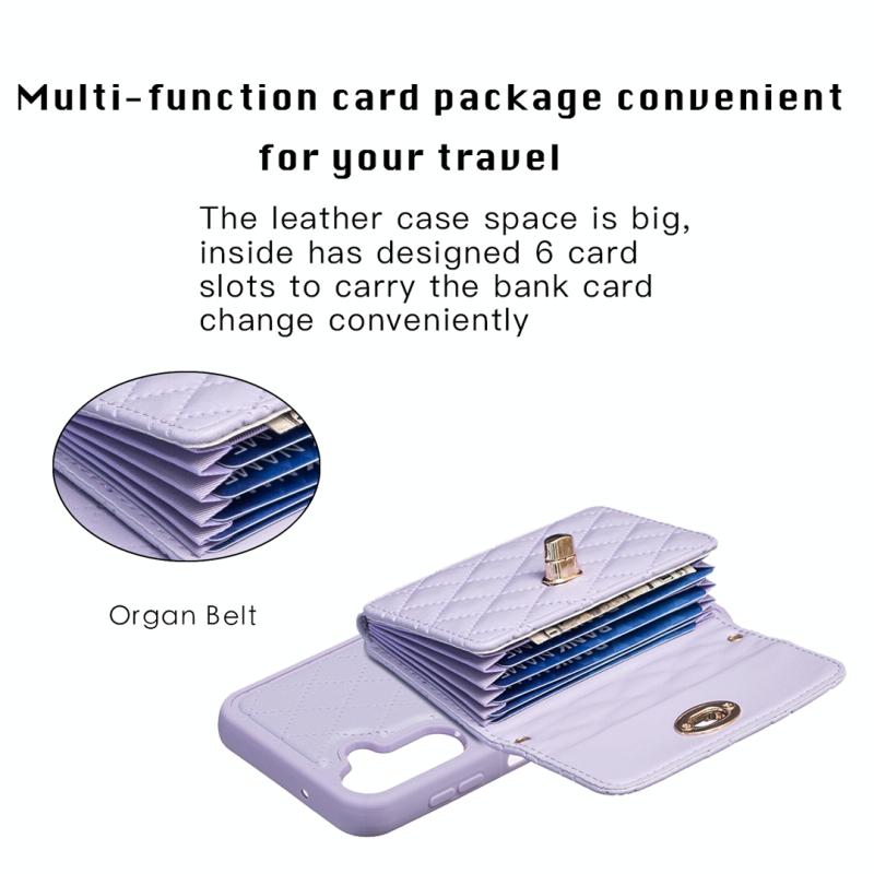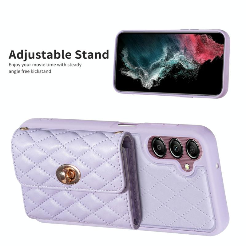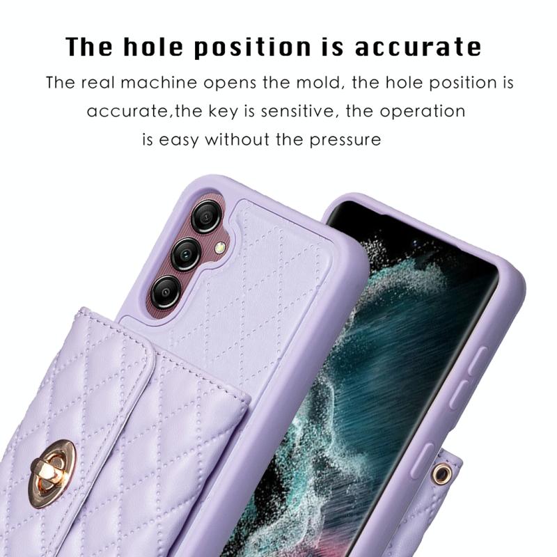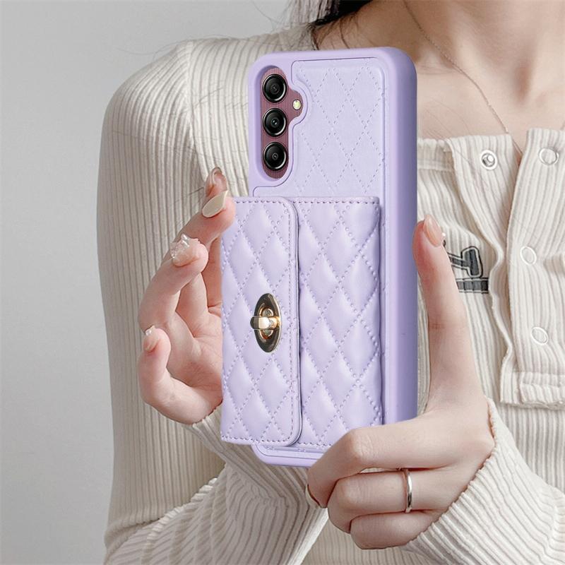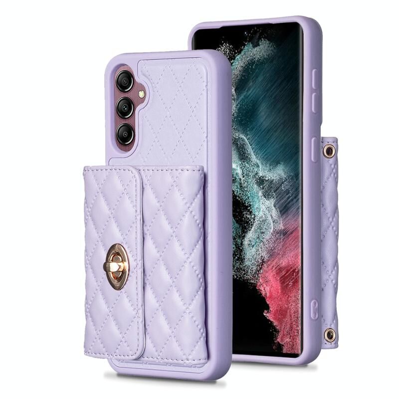 Θήκη τηλεφώνου Samsung Galaxy A14 4G / 5G Οριζόντια Μεταλλική Αγκράφα Πορτοφόλι Ρομβοειδές Δερμάτινη (Μωβ)