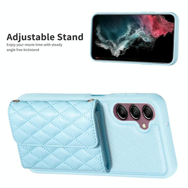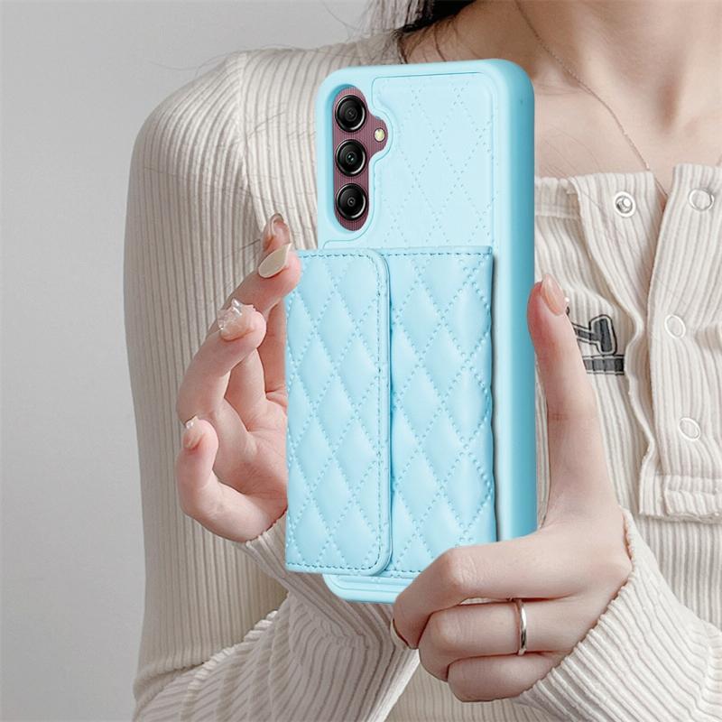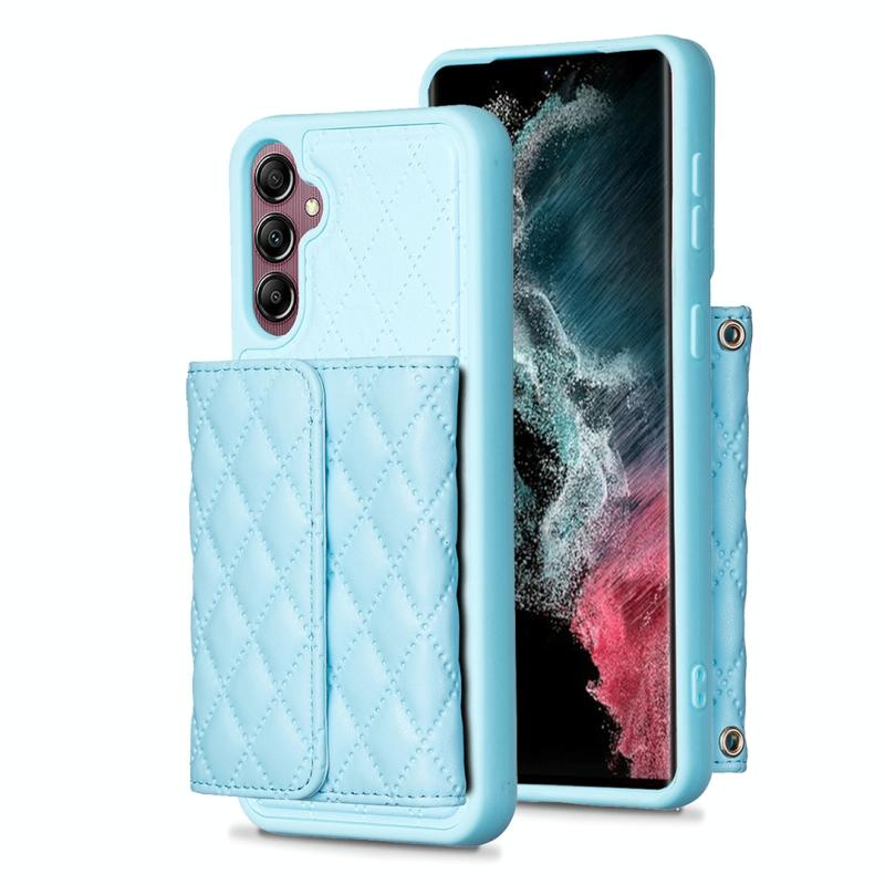 Θήκη τηλεφώνου οριζόντιο πορτοφόλι δερμάτινο με ρόμβους για Samsung Galaxy A14 4G / 5G (Μπλε)