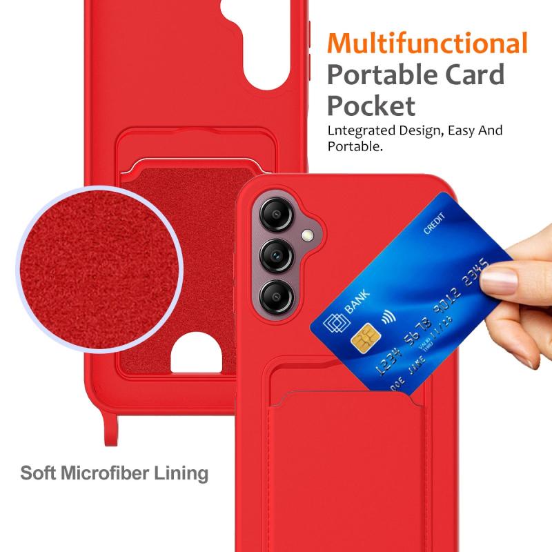 For Samsung Galaxy A14 4G/5G Integrated Card Bag Solid Color Liquid Silicone Phone Case with Lanyard(Red)