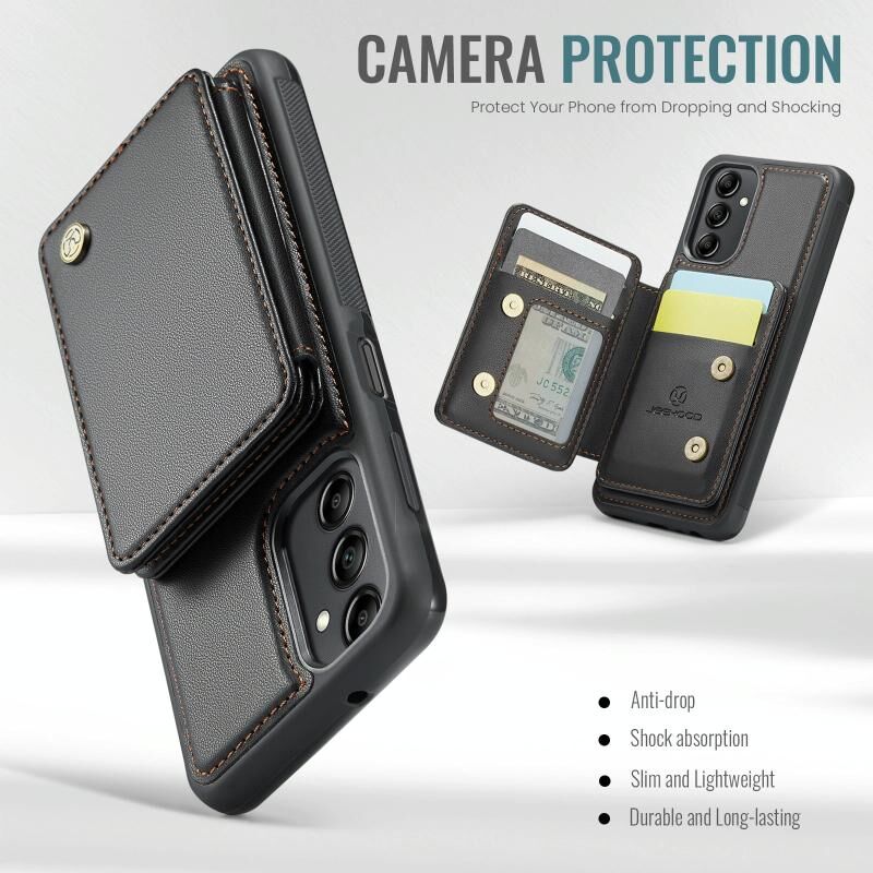 Θήκη τηλεφώνου JEEHOOD J05 από δέρμα με μαγνητικό κλείσιμο και προστασία RFID για Samsung Galaxy A14 4G / 5G (Μαύρο) (JEEHOOD)