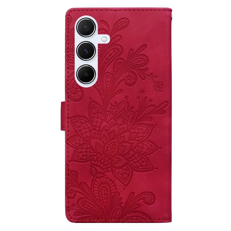 Θήκη τηλεφώνου Samsung Galaxy A14 4G / 5G από δερματίνη PU με μαγνητικό κούμπωμα, δαντελένιο floral ανάγλυφο και λουρί καρπού (Πράσινο)