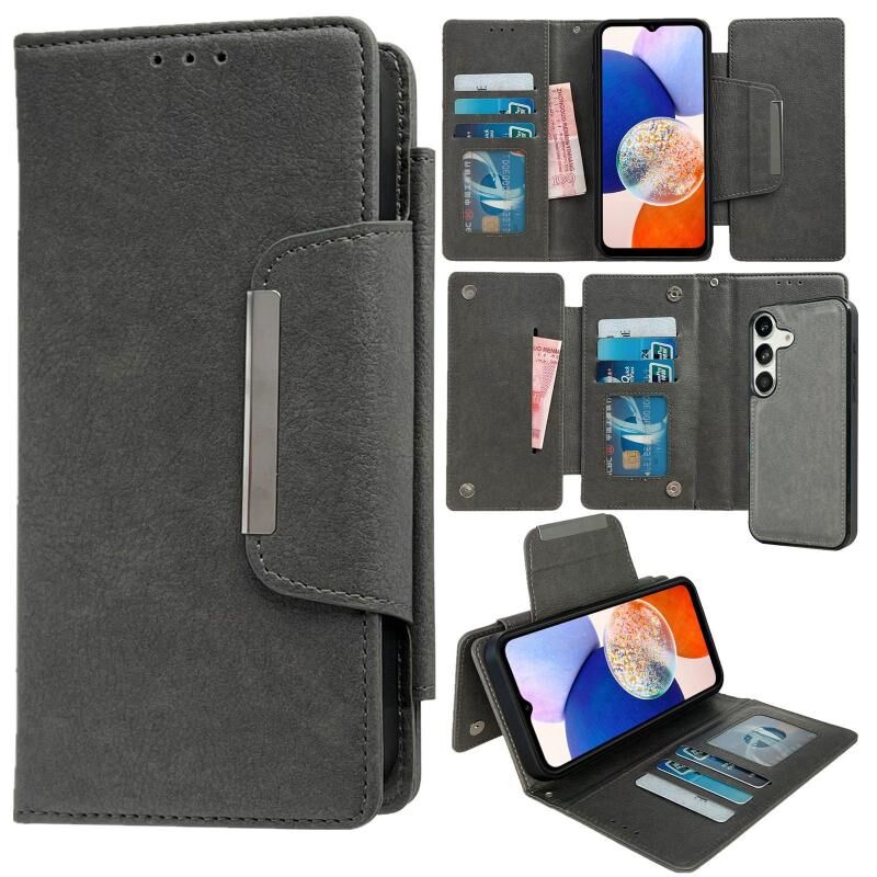 Για Samsung Galaxy A14 4G/5G Πολυλειτουργική 7-κάρτα πορτοφόλι δερμάτινη θήκη τηλεφώνου (Γκρι)