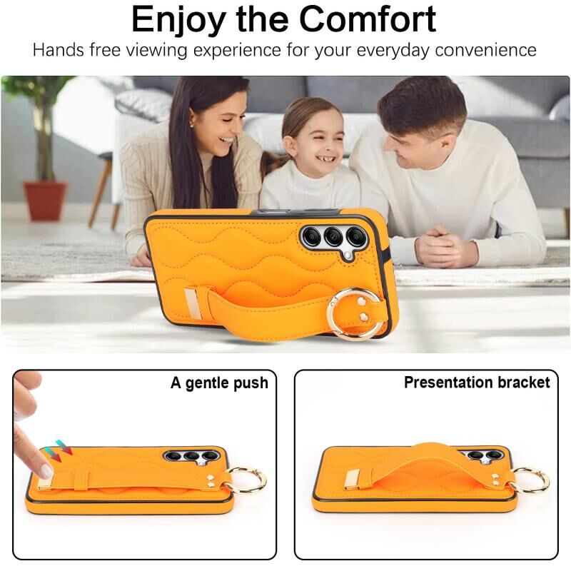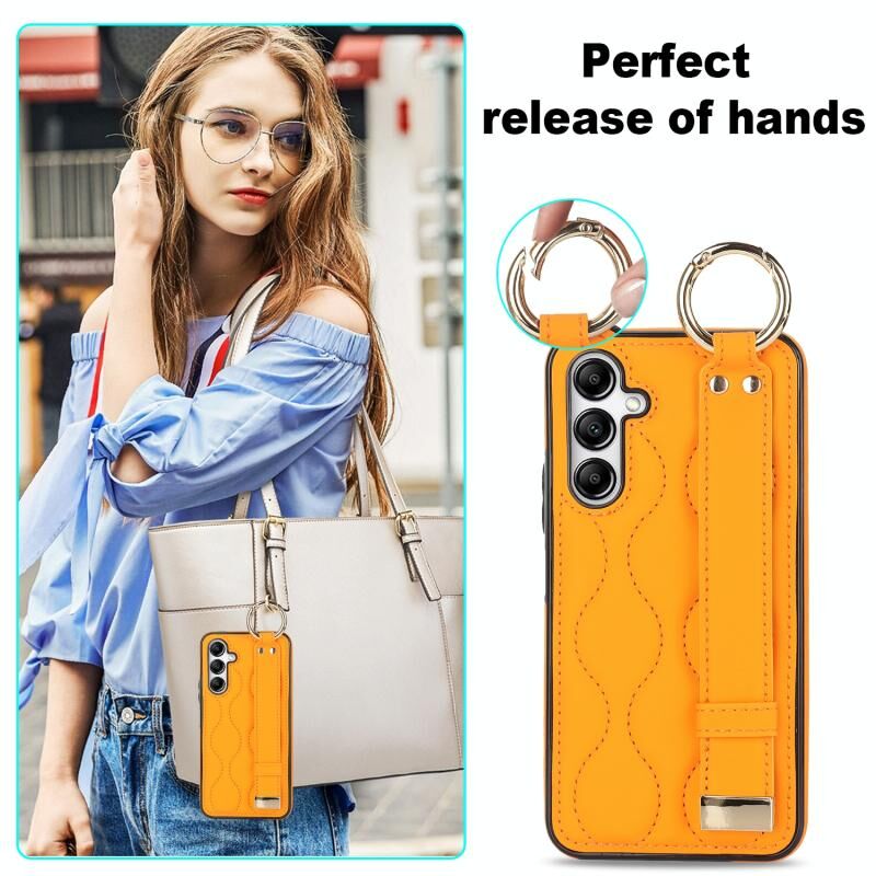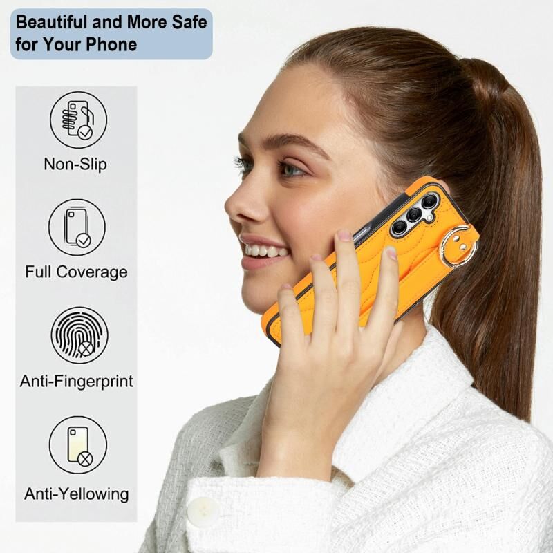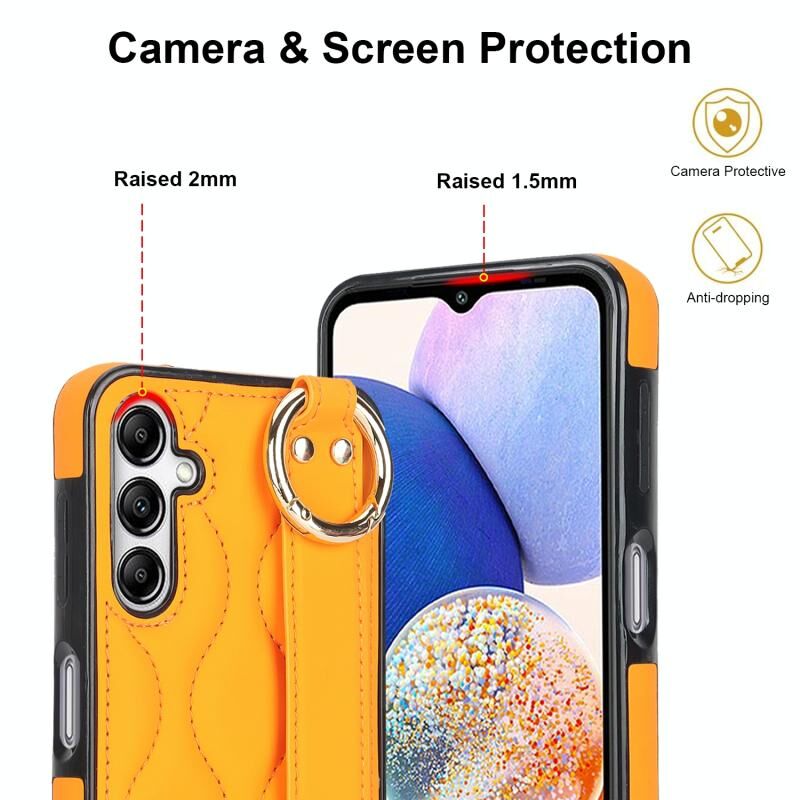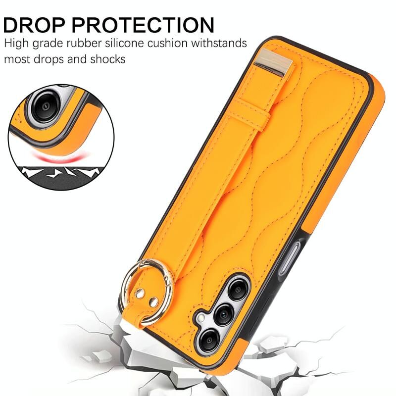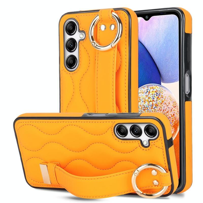 Για το Samsung Galaxy A14 4G / 5G Αντιολισθητική θήκη τηλεφώνου PU δακτυλίου πλήρους κάλυψης με ζώνη καρπού (πορτοκαλί)