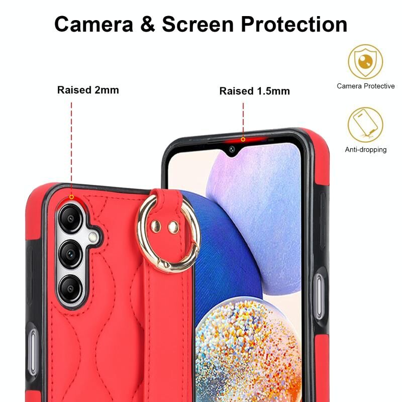 Για το Samsung Galaxy A14 4G / 5G Αντιολισθητική θήκη τηλεφώνου PU πλήρους κάλυψης δακτυλίου με ζώνη καρπού (κόκκινο)