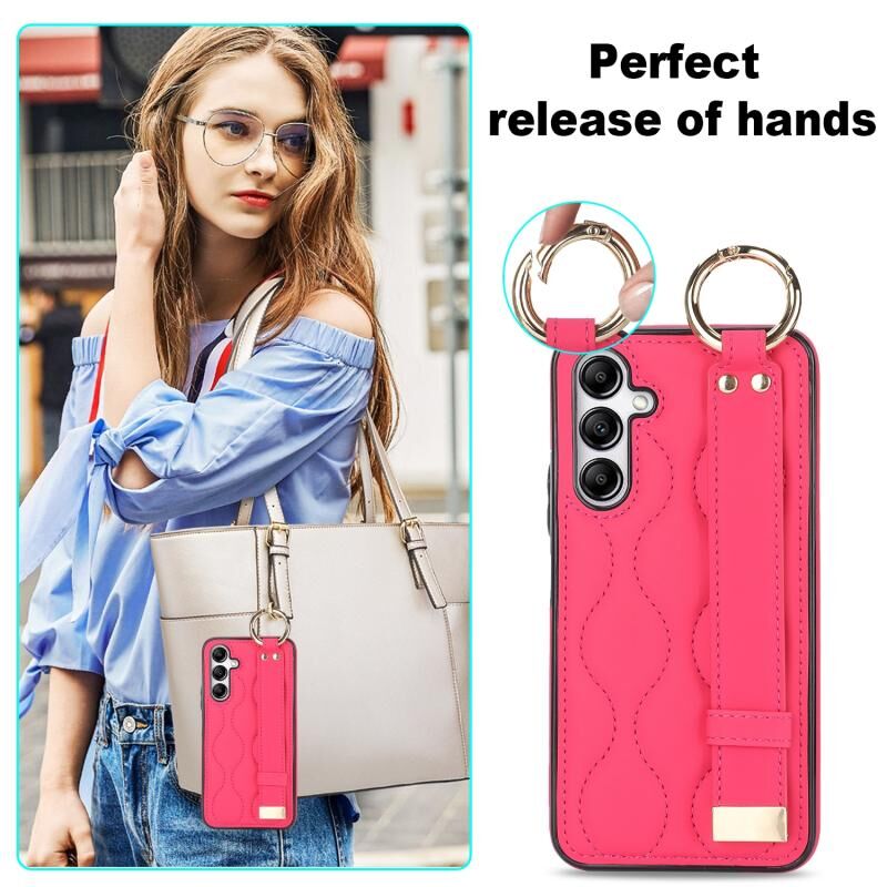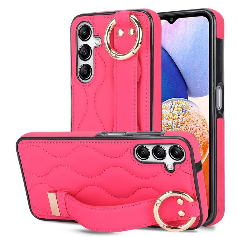 Για το Samsung Galaxy A14 4G / 5G Αντιολισθητική θήκη τηλεφώνου PU πλήρους κάλυψης με ζώνη καρπού (ροζ κόκκινο)