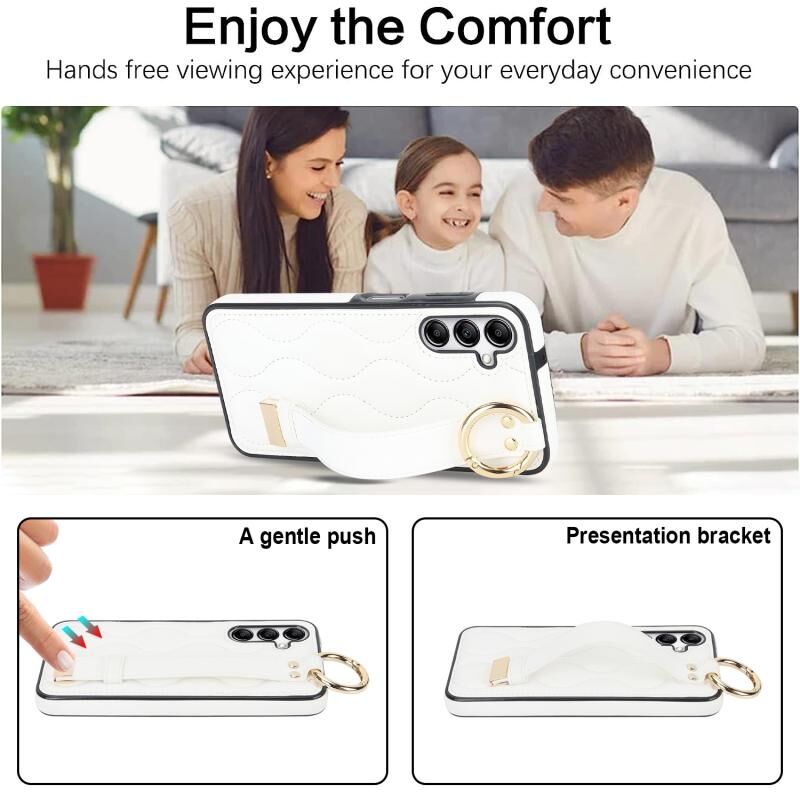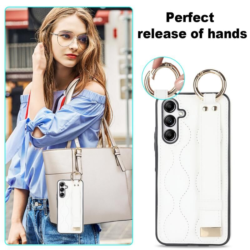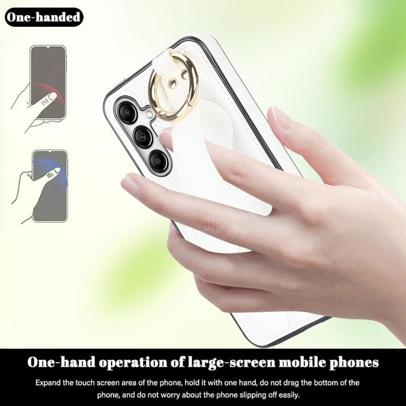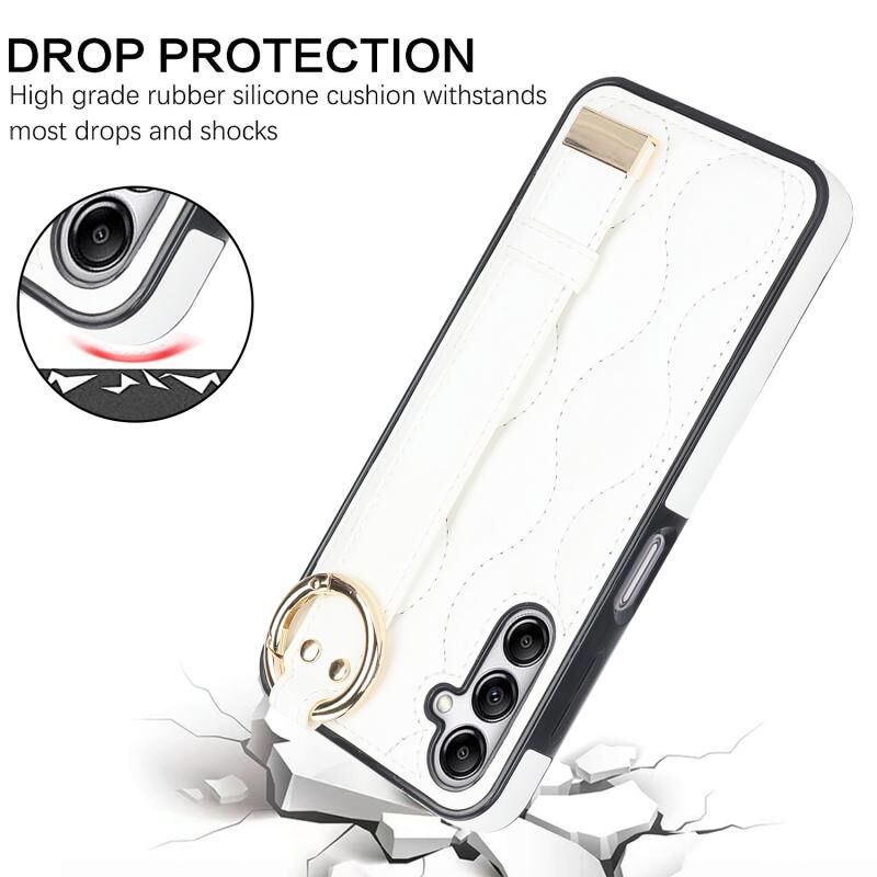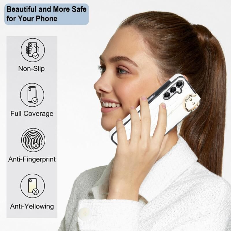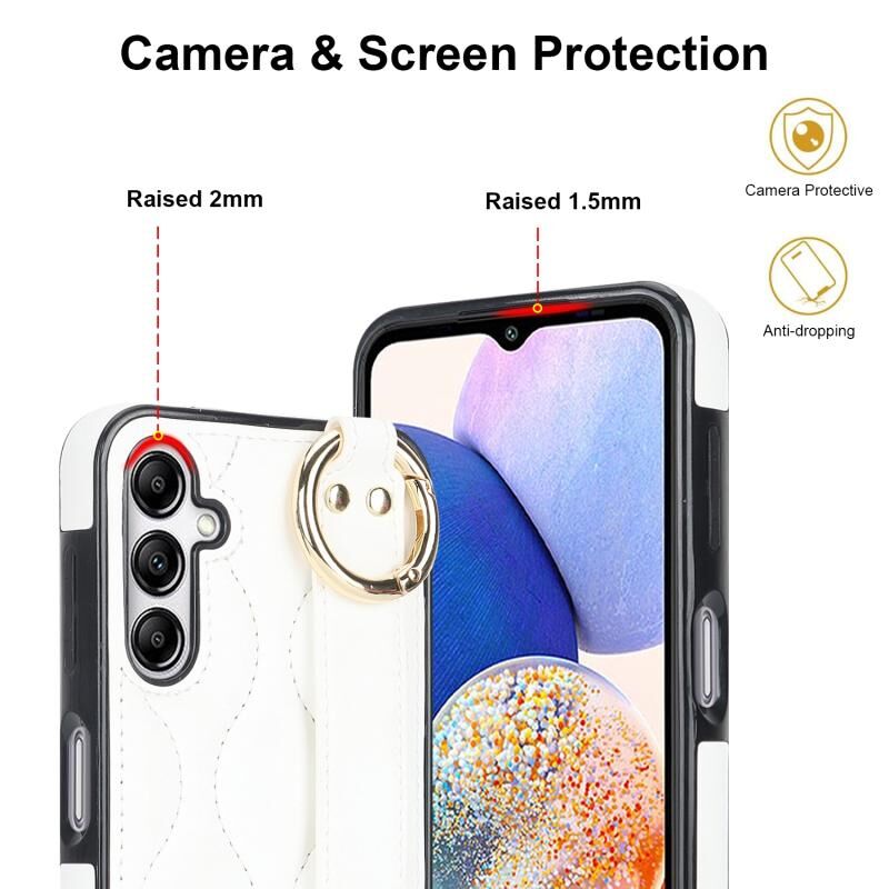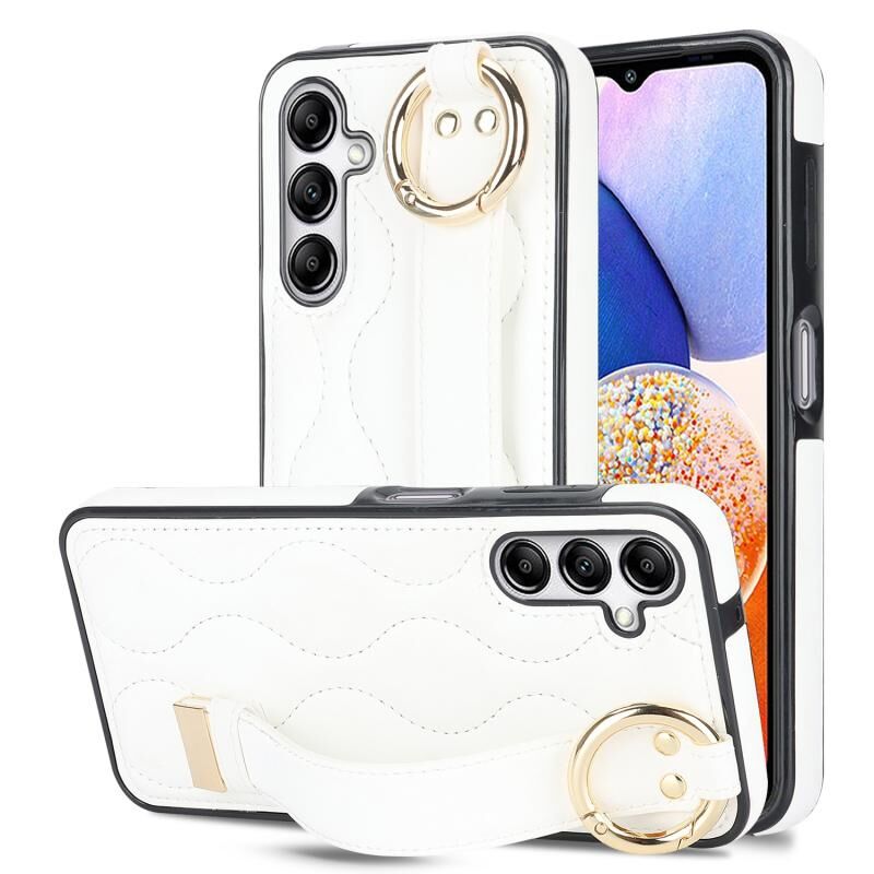 Για το Samsung Galaxy A14 4G / 5G Αντιολισθητική θήκη τηλεφώνου PU δακτυλίου πλήρους κάλυψης με ζώνη καρπού (λευκό)