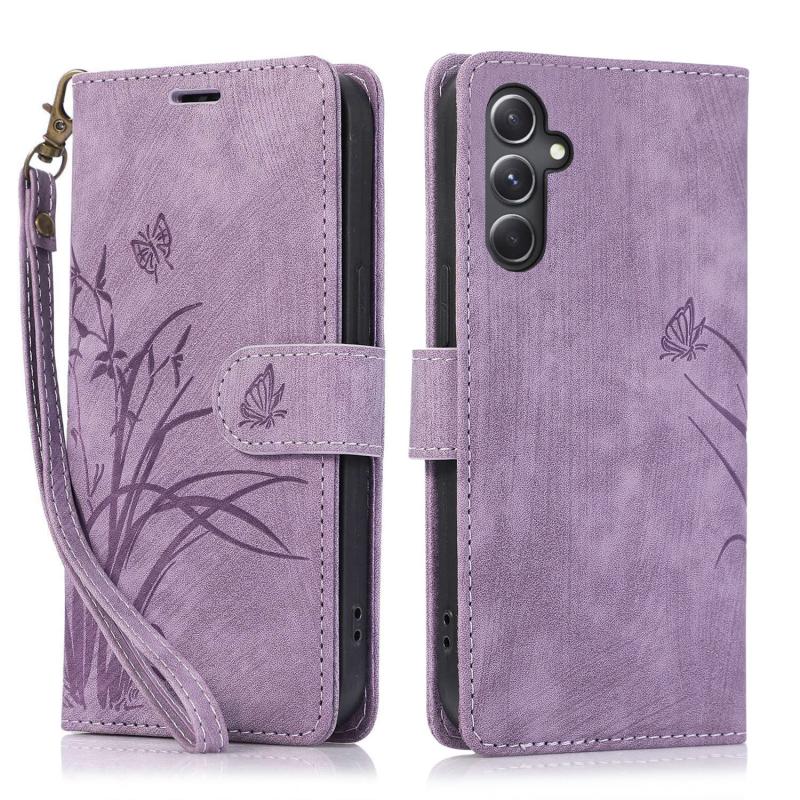 For Samsung Galaxy A14 4G / 5G Orchid Butterfly Embossed Leather Phone Case(Purple)