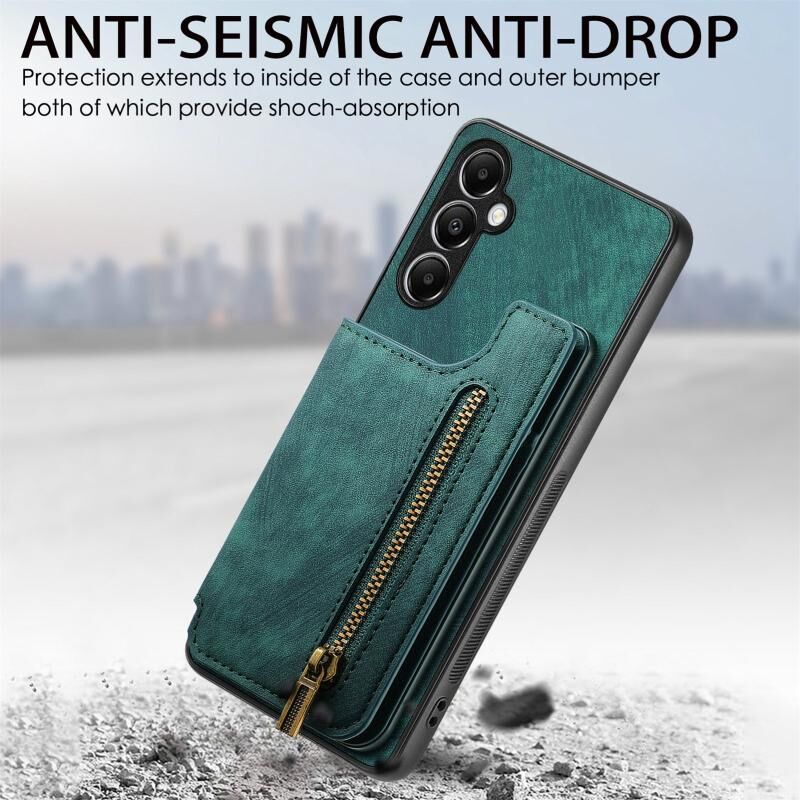 Για Samsung Galaxy A14 4G/5G Ρετρό δέρμα φερμουάρ πορτοφόλι πίσω θήκη τηλεφώνου (πράσινο)