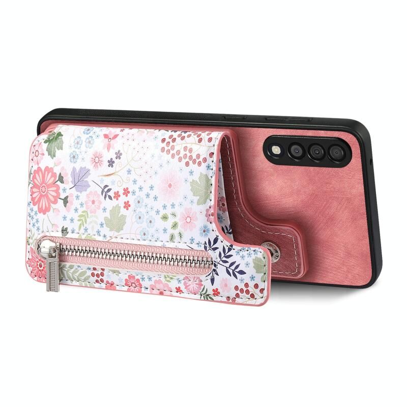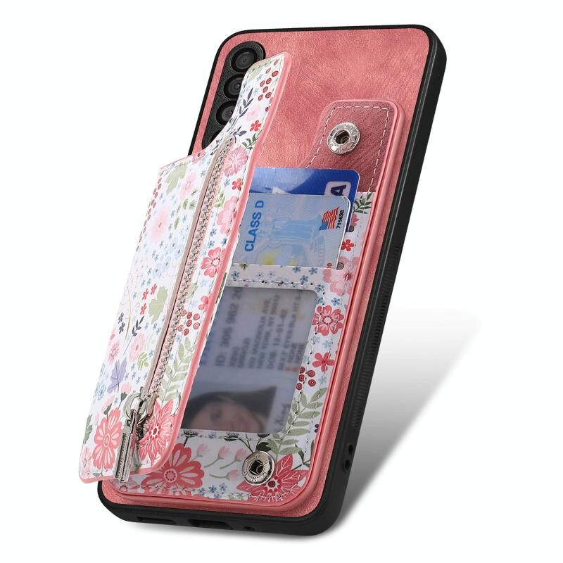 Για Samsung Galaxy A14 4G/5G ρετρό ζωγραφισμένο φερμουάρ πορτοφόλι πίσω υπόθεση τηλεφώνου (ροζ)