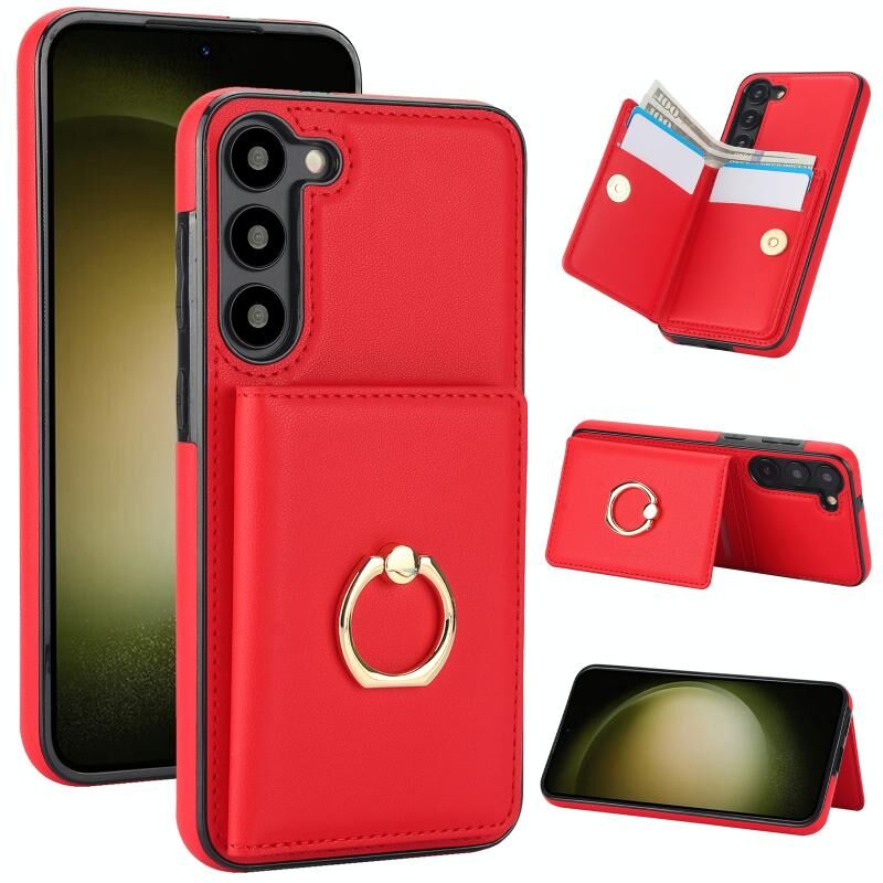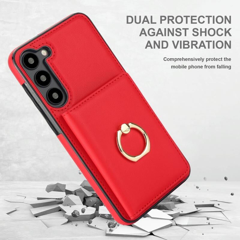 For Samsung Galaxy A14 4G/5G RFID Anti-theft Card Ring Holder Phone Case(Red)