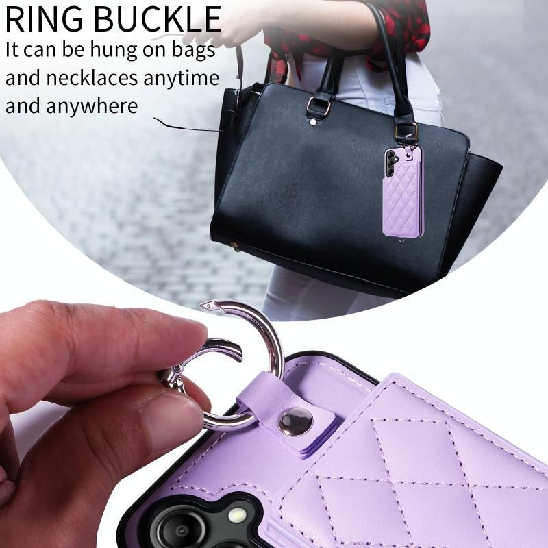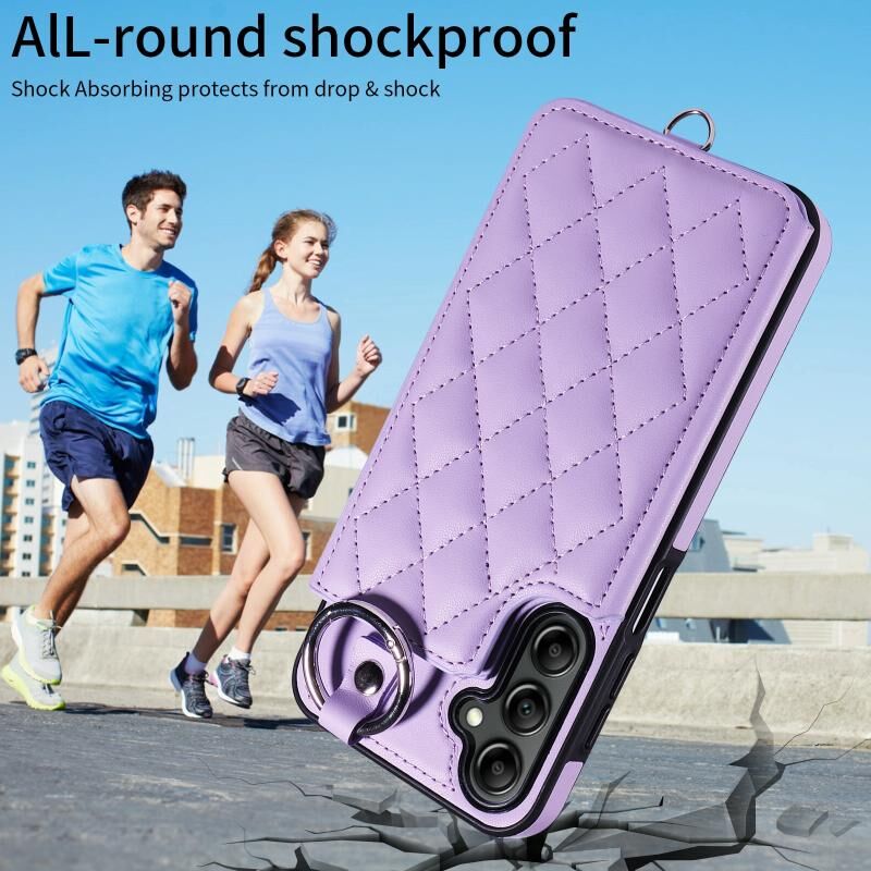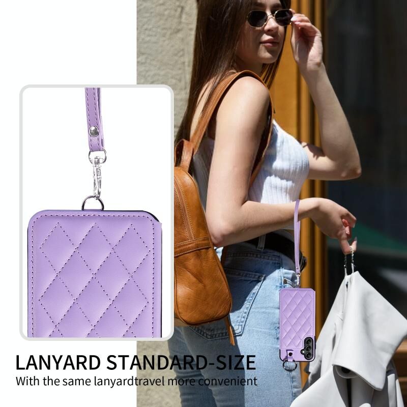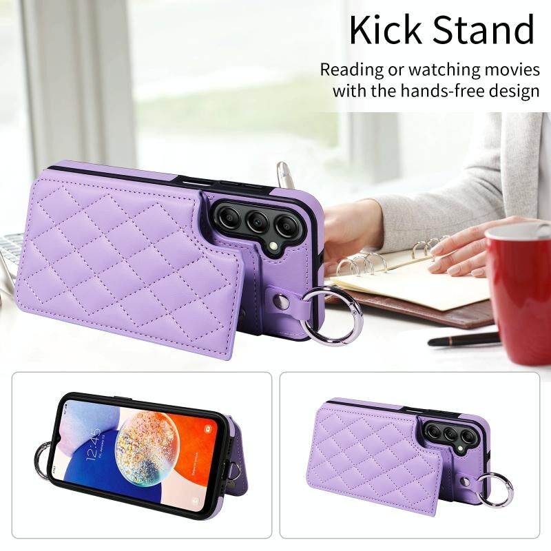 Για Samsung Galaxy A14 4G / 5G Rhombic υφή κάρτα τσάντα υπόθεση τηλεφώνου με σύντομο κορδόνι (Μωβ)