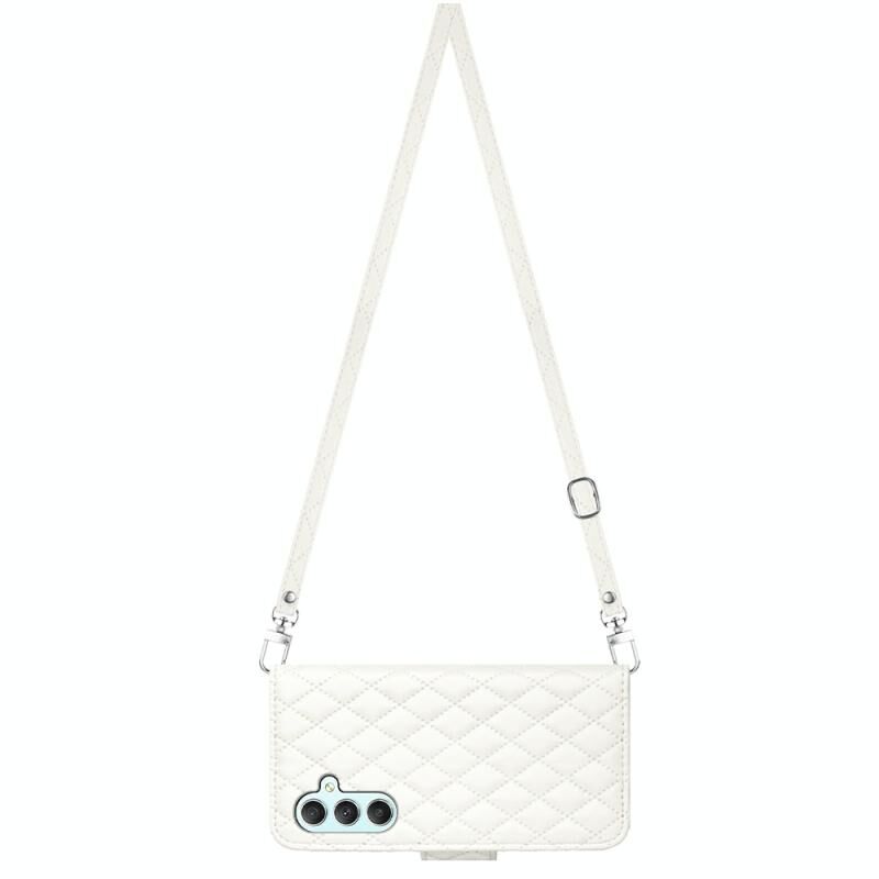 Για Samsung Galaxy A14 4G / 5G Rhombic υφή Flip δερμάτινη θήκη τηλεφώνου με μακρύ κορδόνι (λευκό)