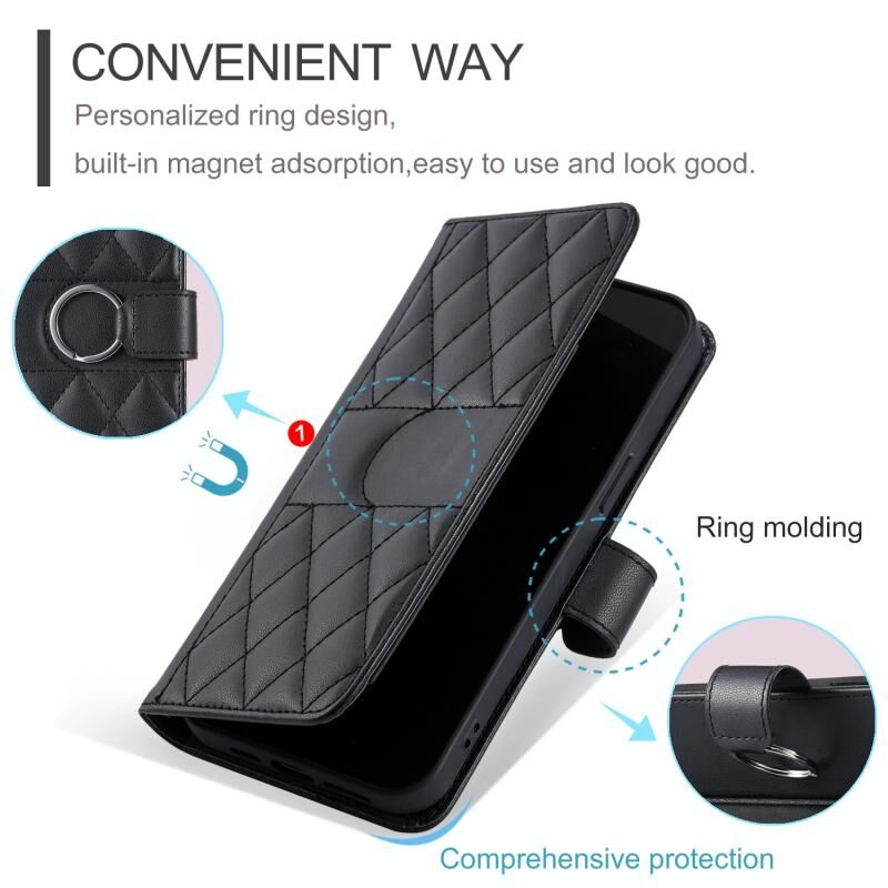 Για το Samsung Galaxy A14 4G / 5G δαχτυλίδι πόρπη ρομβοειδής δερμάτινη θήκη τηλεφώνου (Μαύρο)