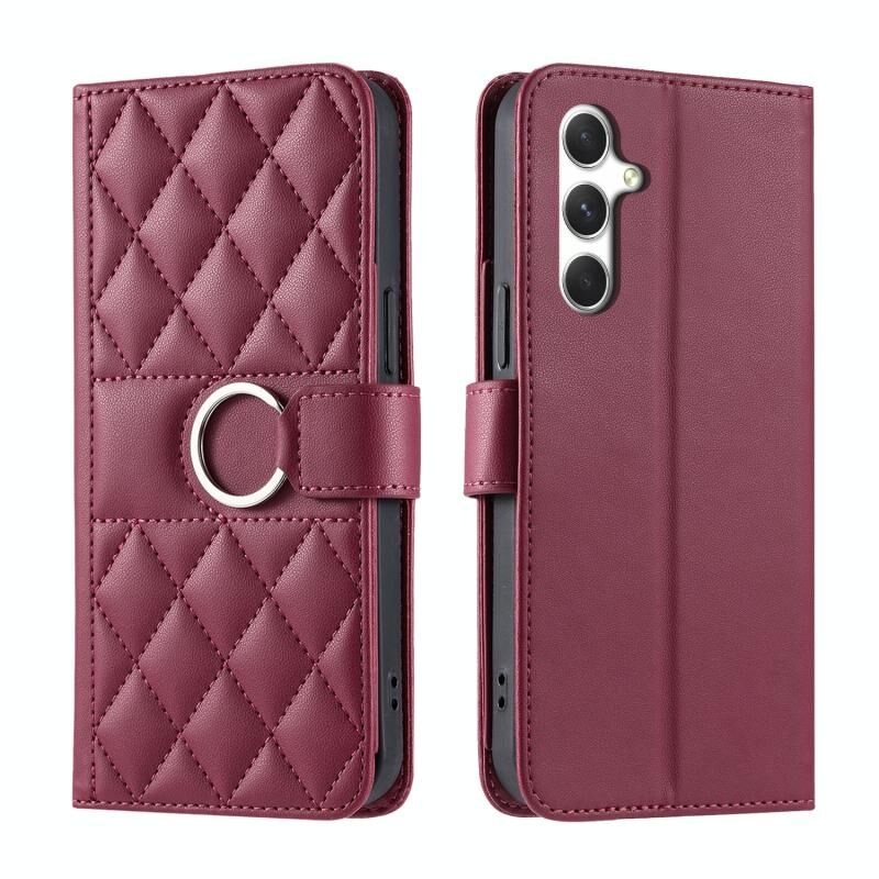 Για το Samsung Galaxy A14 4G / 5G δαχτυλίδι πόρπη ρομβοειδής δερμάτινη θήκη τηλεφώνου (κόκκινο)