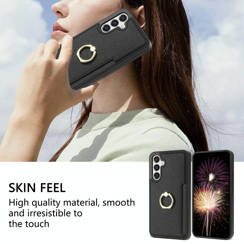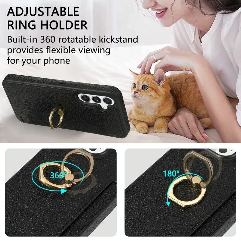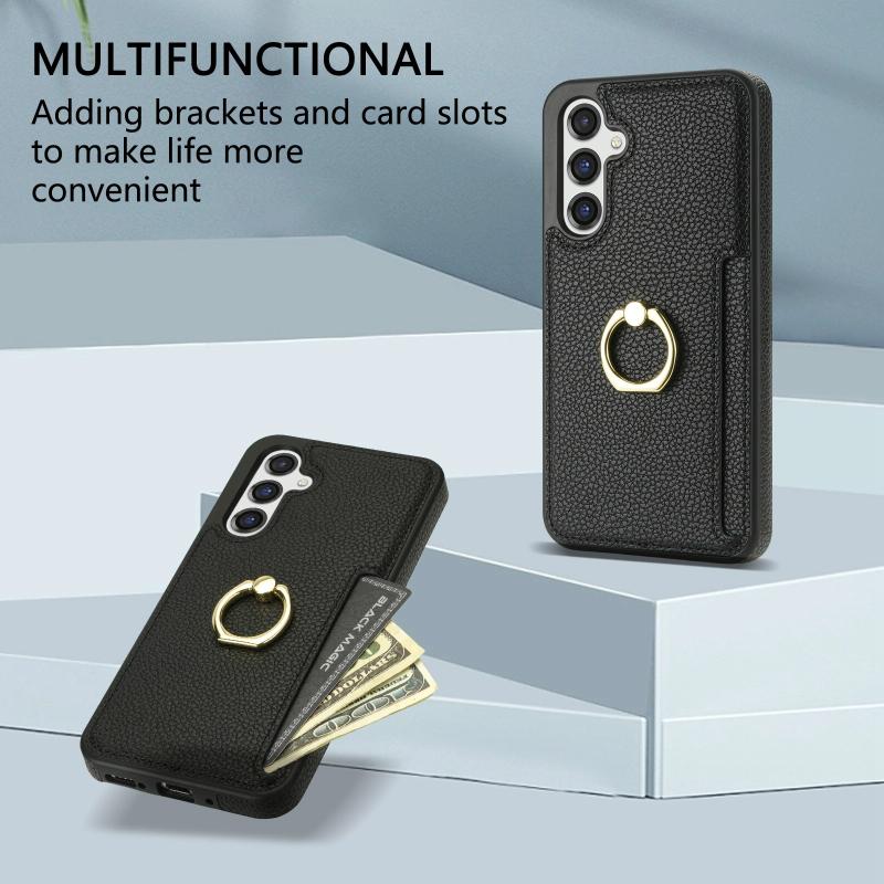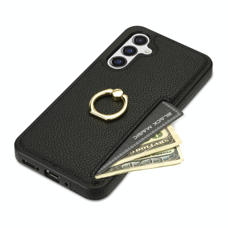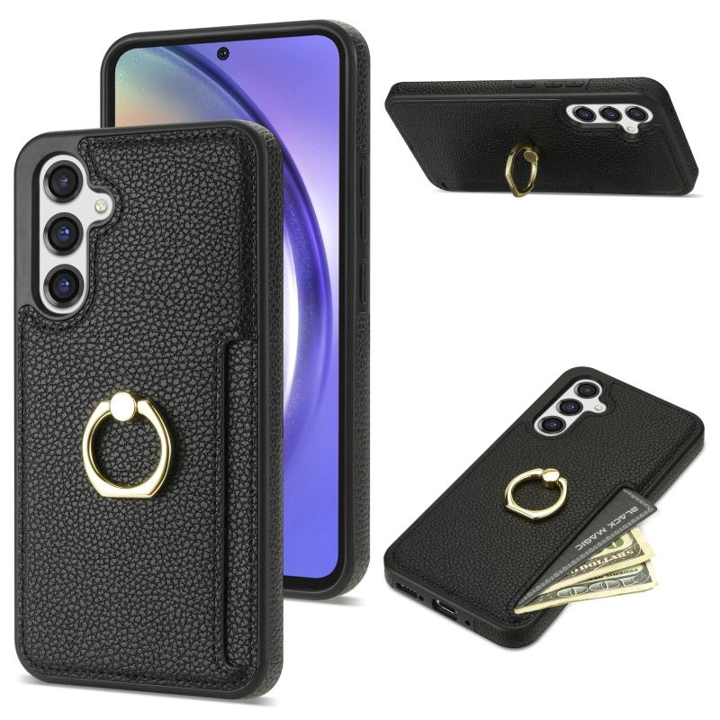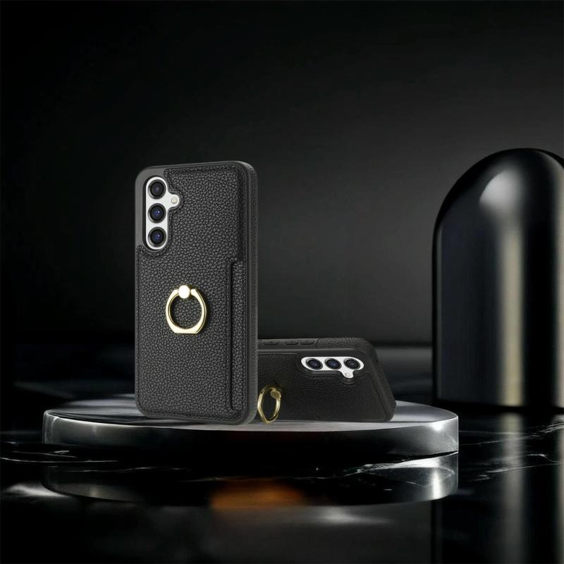 For Samsung Galaxy A14 4G/5G Ring Card Litchi Leather Back Phone Case(Black)