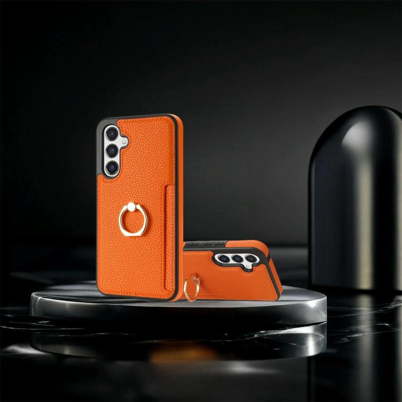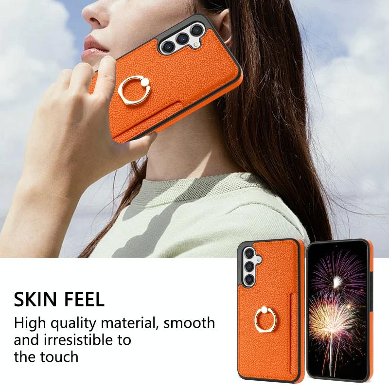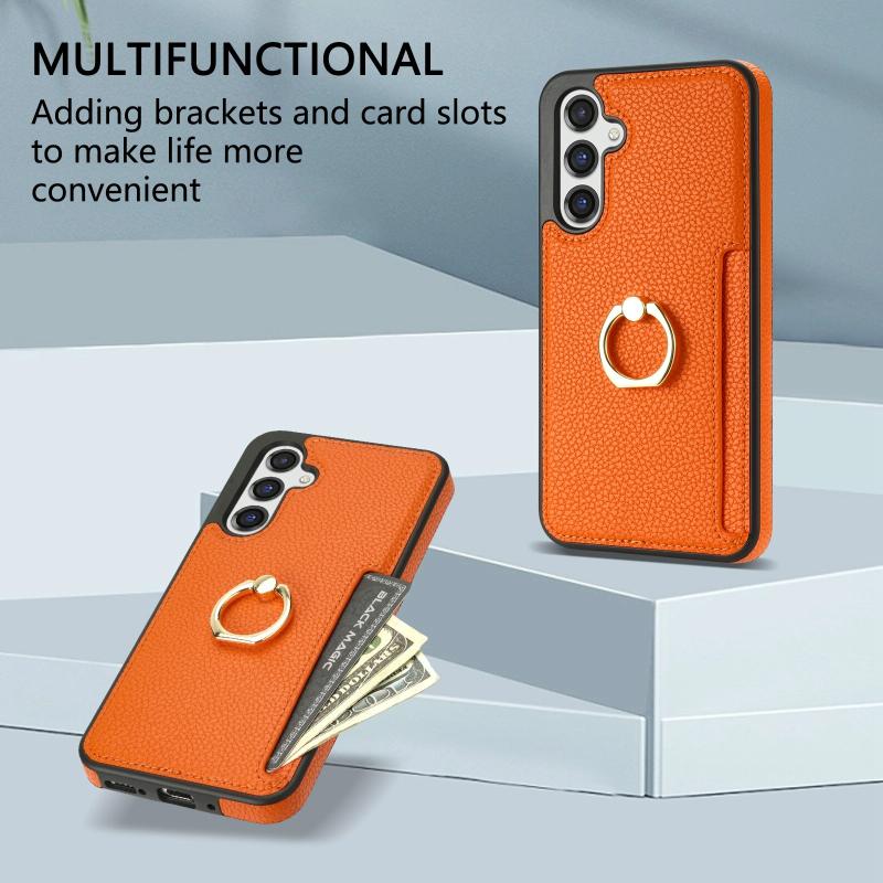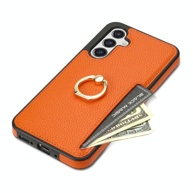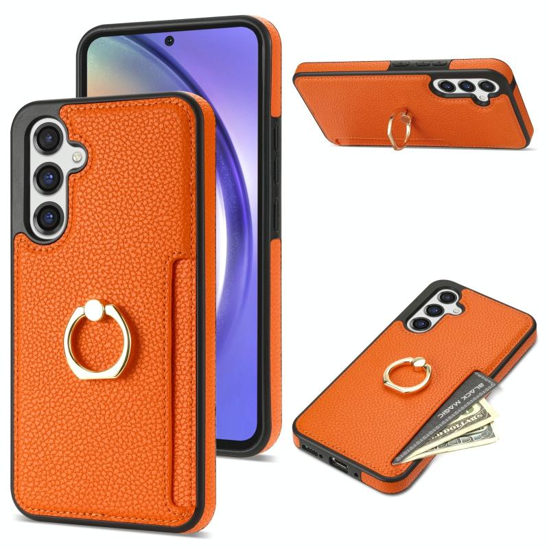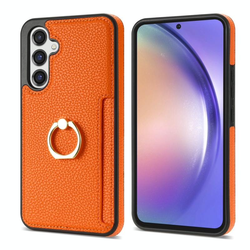 For Samsung Galaxy A14 4G/5G Ring Card Litchi Leather Back Phone Case(Orange)