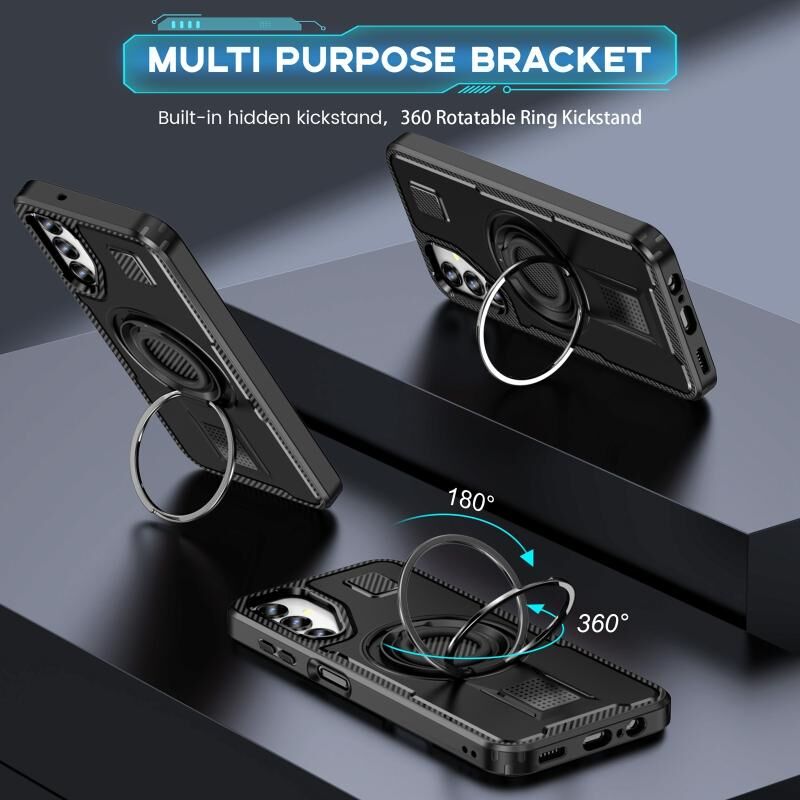 Για Samsung Galaxy A14 4G / 5G δαχτυλίδι κάτοχος ανθρακονήματα PC υβριδικό TPU τηλέφωνο υπόθεση (μαύρο)