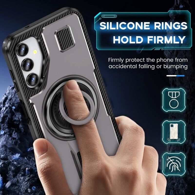3. Δακτύλιος και βάση σιλικόνης: Όχι μόνο βασική προστασία, η θήκη θα λειτουργήσει ως λαβή τηλεφώνου για να κρατάτε σταθερά το τηλέφωνό σας. Και ως βάση τηλεφώνου που επιτρέπει τη λειτουργία πορτραίτου ή οριζοντίου σε πολλές γωνίες.