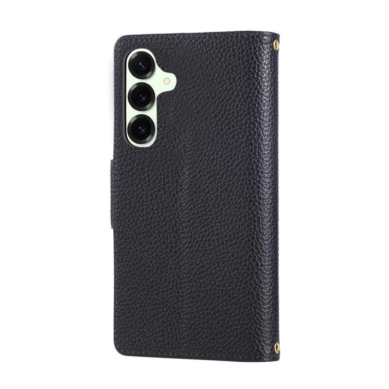 Θήκη κινητού τηλεφώνου Samsung Galaxy A14 4G / 5G από δέρμα με αγκράφα και φερμουάρ, με λουρί crossbody (Μαύρο)