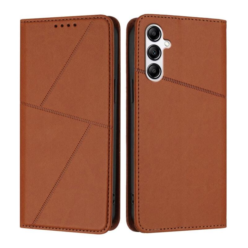 For Samsung Galaxy A14 4G / 5G Strong Magnetic Frosted Flip Leather Phone Case(Coffee Color)