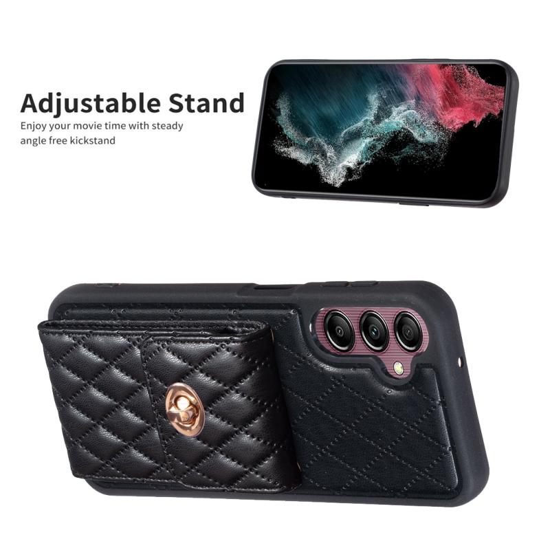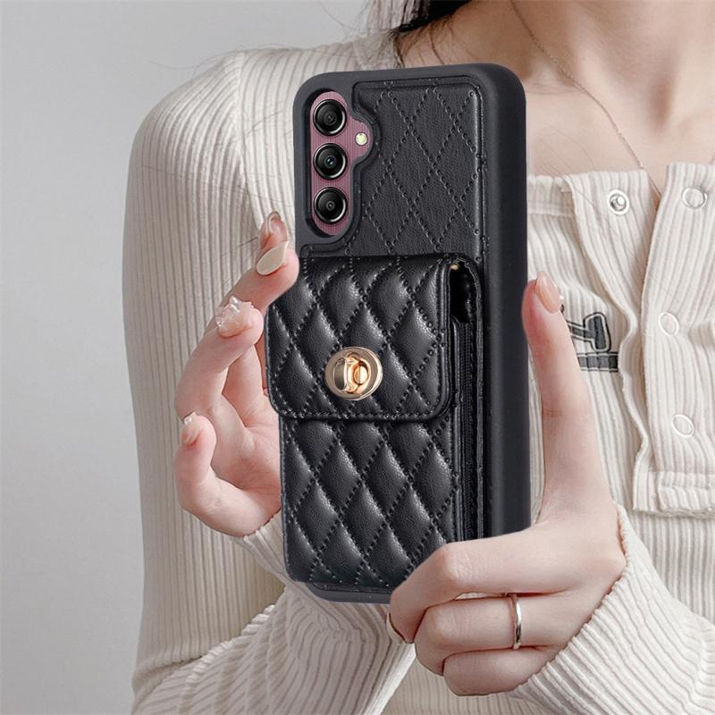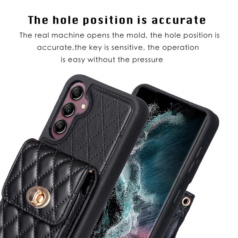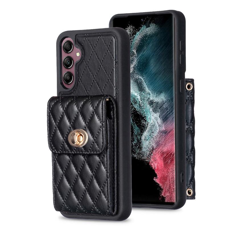 Θήκη τηλεφώνου Samsung Galaxy A14 4G / 5G κάθετη με μεταλλική αγκράφα, δερμάτινη με ρόμβους (Μαύρο)