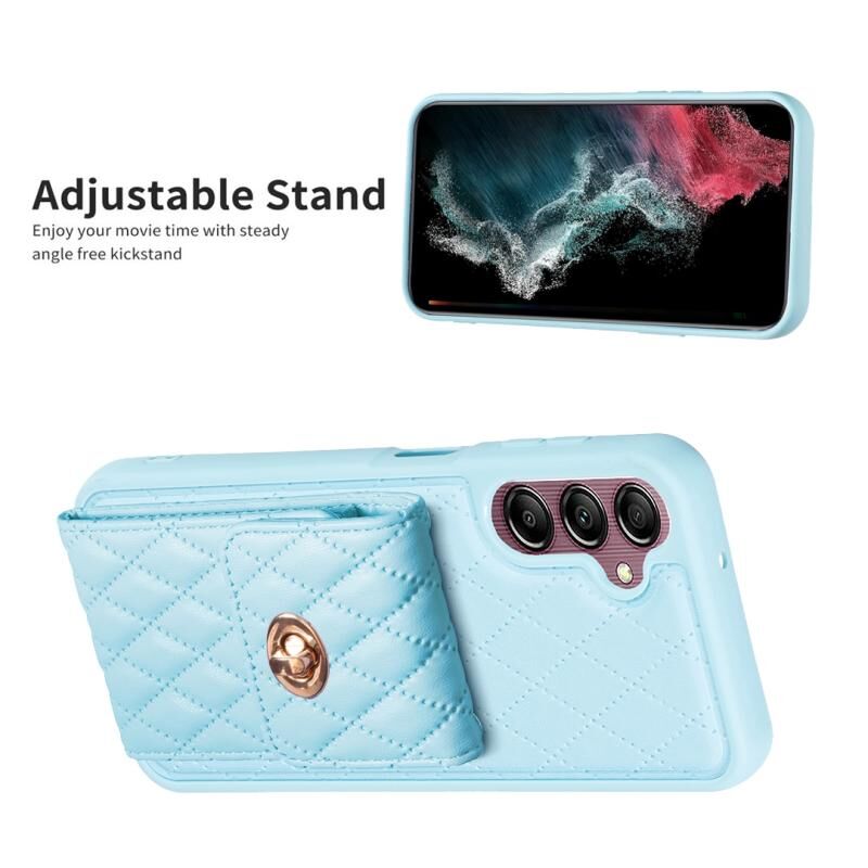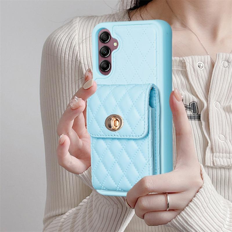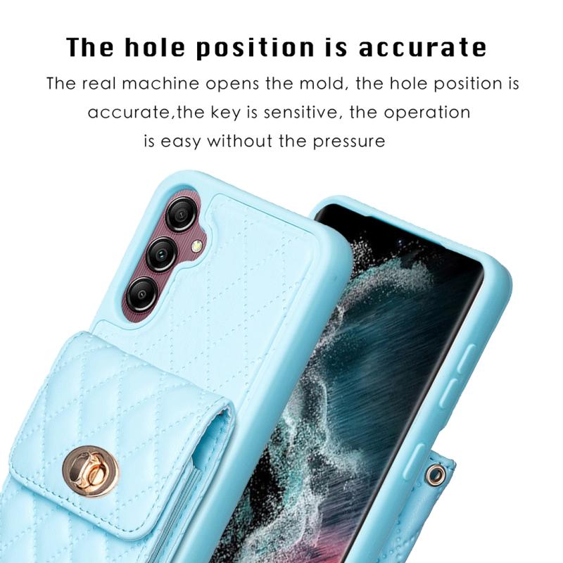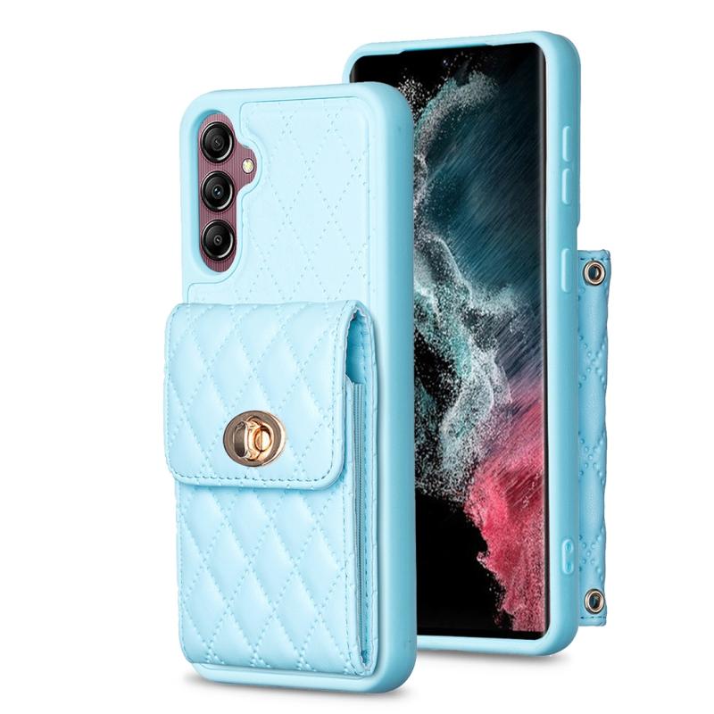 Θήκη τηλεφώνου Samsung Galaxy A14 4G / 5G κάθετη με μεταλλική αγκράφα, δερμάτινη με ρόμβους (Μπλε)