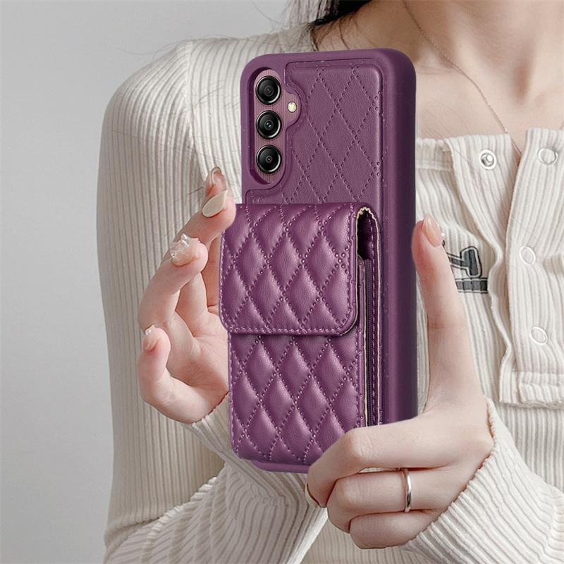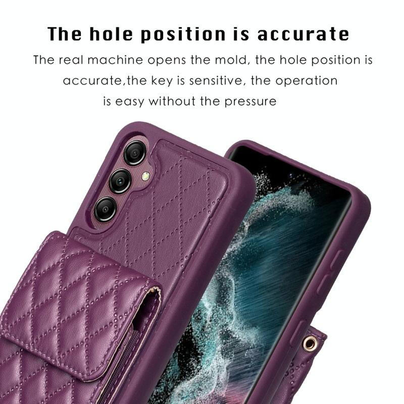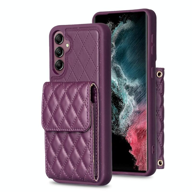 Θήκη τηλεφώνου κάθετης τσέπης από δέρμα με ρόμβους για Samsung Galaxy A14 4G / 5G (Σκούρο μωβ)