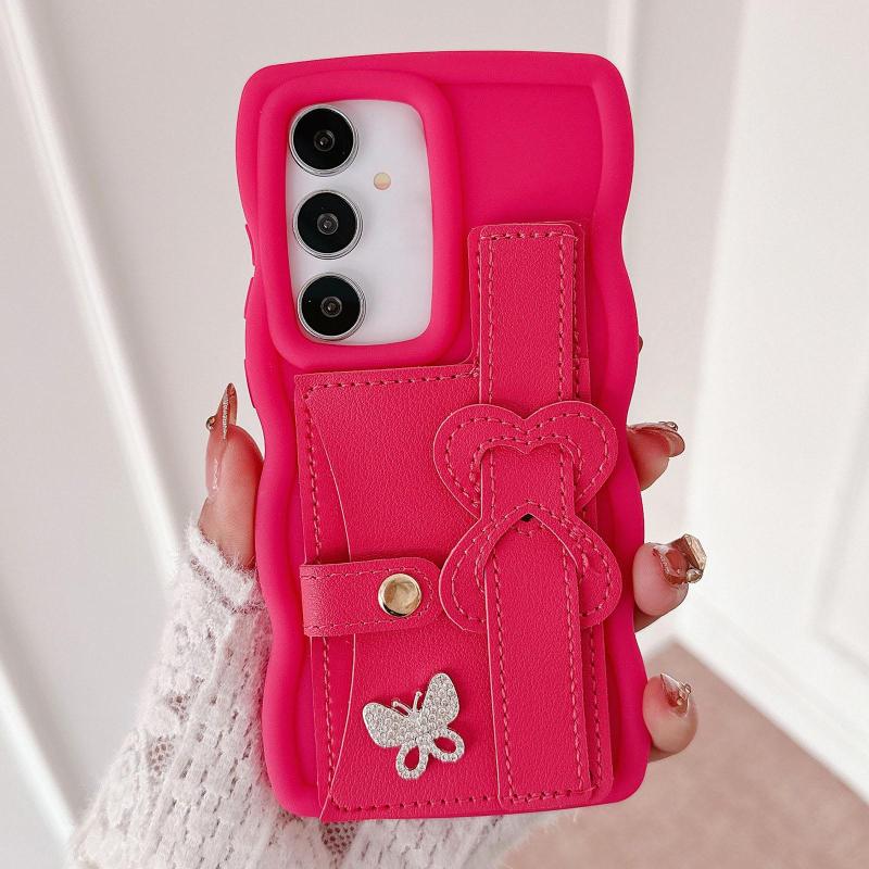Θήκη Samsung Galaxy A14 4G / 5G Δερμάτινο Βραχιόλι με Κάρτες (Ροζ Κόκκινο)