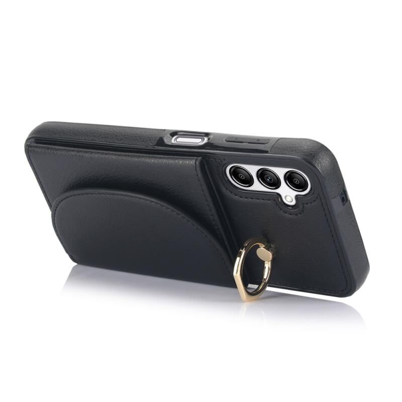 Για Samsung Galaxy A14 4G / 5G YM007 Ring κάτοχος κάρτα τσάντα τσάντα δέρμα αίσθηση υπόθεση τηλεφώνου (Μαύρο)
