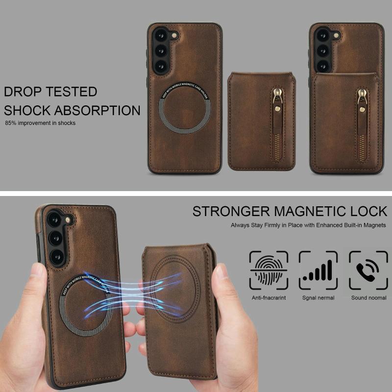 For Samsung Galaxy A14 4G / 5G Zipper Wallet Split MagSafe Leather Back Phone Case(Brown)