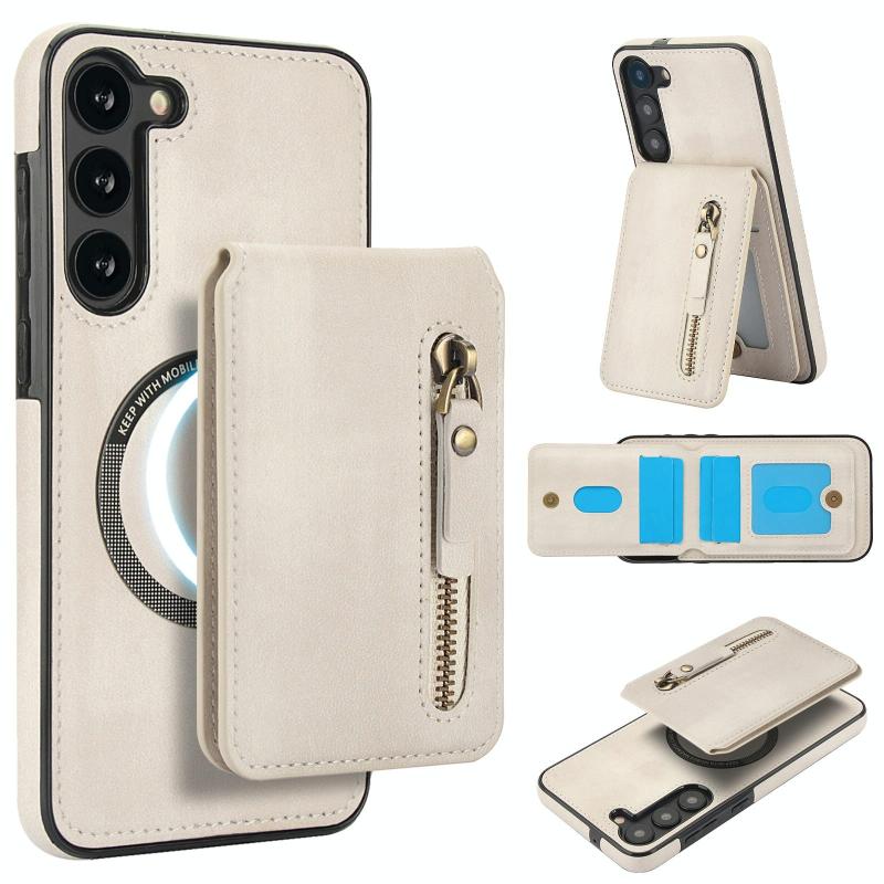For Samsung Galaxy A14 4G / 5G Zipper Wallet Split MagSafe Leather Back Phone Case(White)