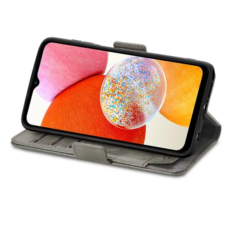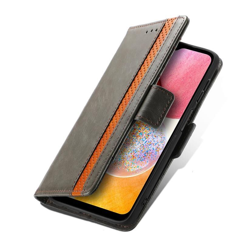 Για Samsung Galaxy A14 4G CaseNeo Splicing Διπλή μαγνητική πόρπη δερμάτινη θήκη τηλεφώνου (Γκρι)