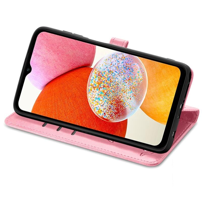 Θήκη τηλεφώνου δερμάτινη με ανάγλυφο σχέδιο γάτας και σκύλου για Samsung Galaxy A14 4G (ρόζ)