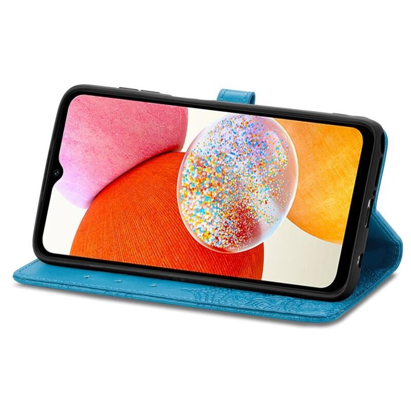 Για Samsung Galaxy A14 4G Mandala λουλούδι ανάγλυφο δερμάτινη θήκη τηλεφώνου (μπλε)