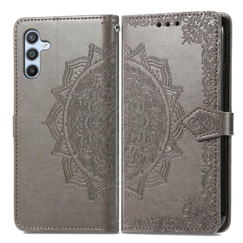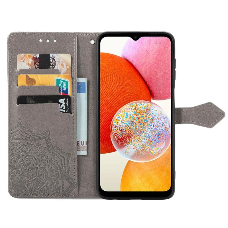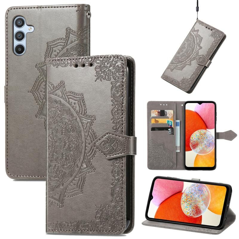 Για Samsung Galaxy A14 4G Mandala λουλούδι ανάγλυφο δερμάτινη θήκη τηλεφώνου (γκρι)