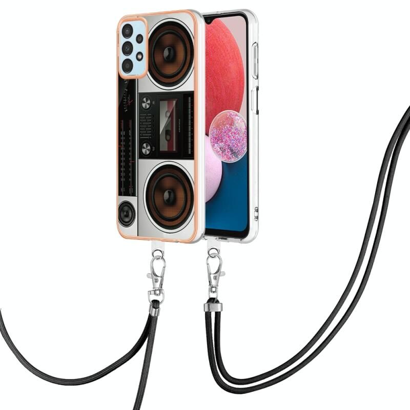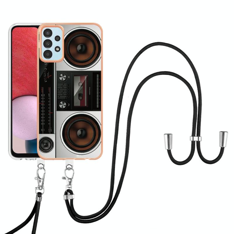 For Samsung Galaxy A14 5G / 4G Electroplating Dual-side IMD Phone Case with Lanyard(Retro Radio)