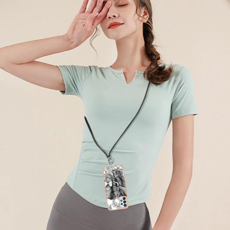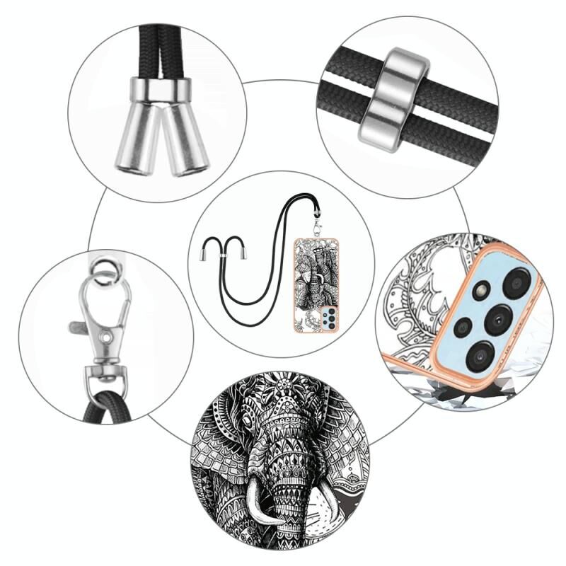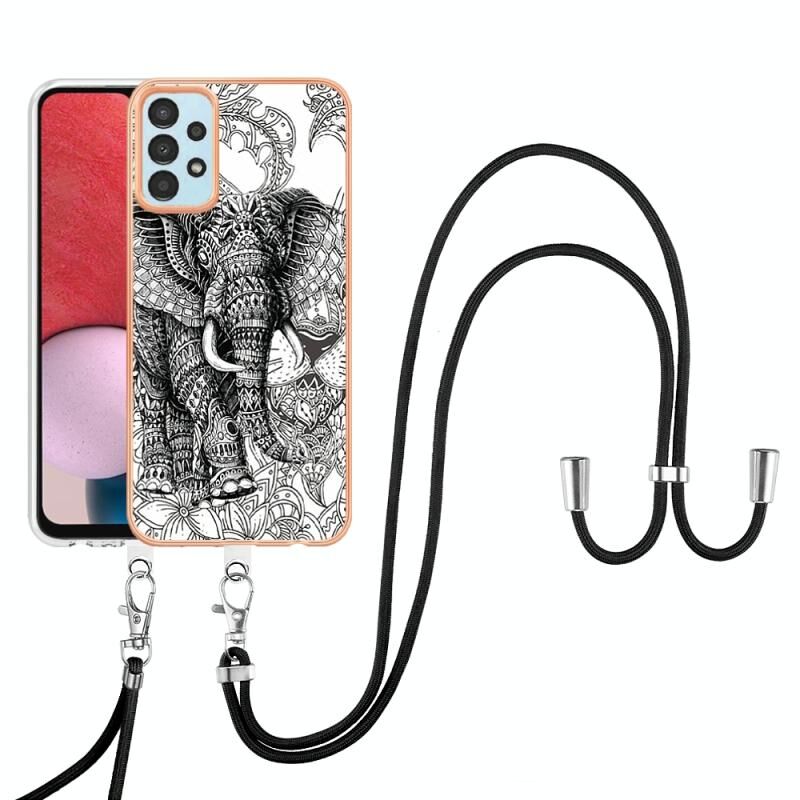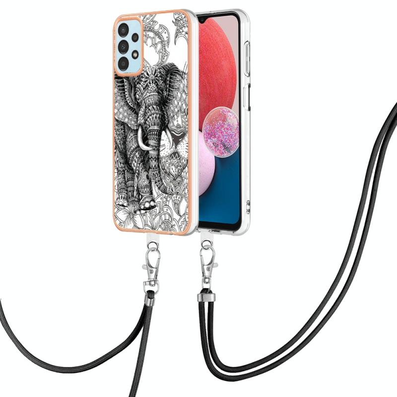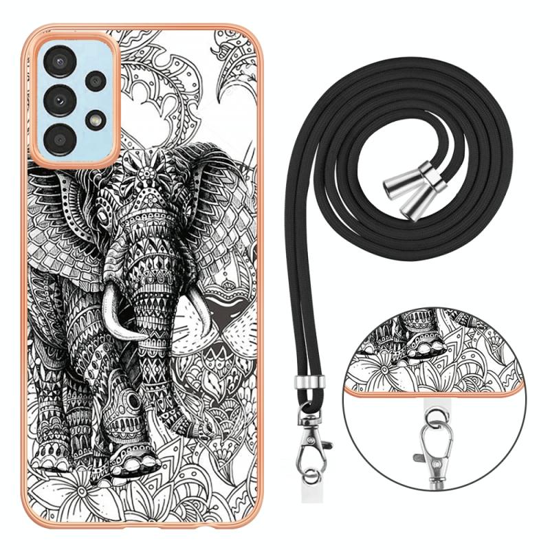 For Samsung Galaxy A14 5G / 4G Electroplating Dual-side IMD Phone Case with Lanyard(Totem Elephant)