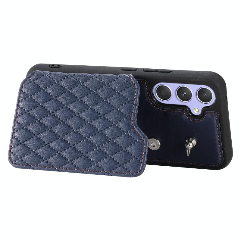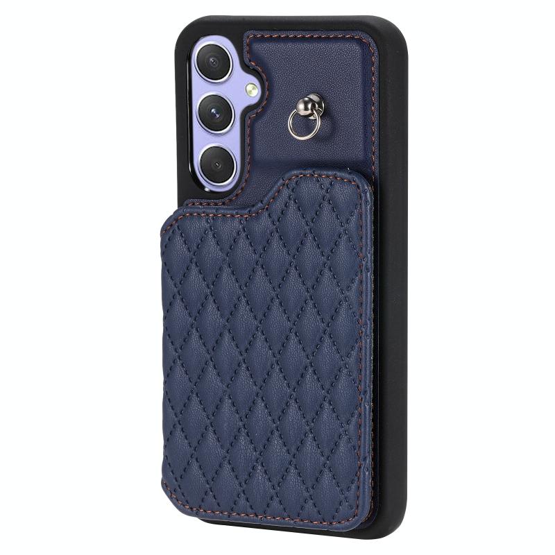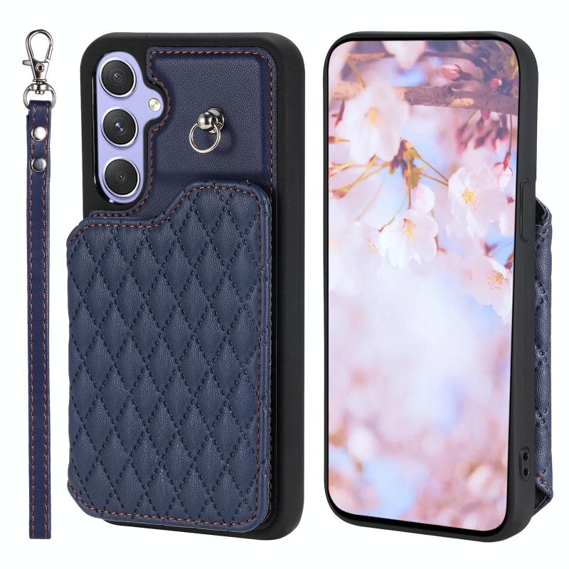 For Samsung Galaxy A14 5G / 4G Grid Texture Card Bag Phone Case with Lanyard(Μπλε)