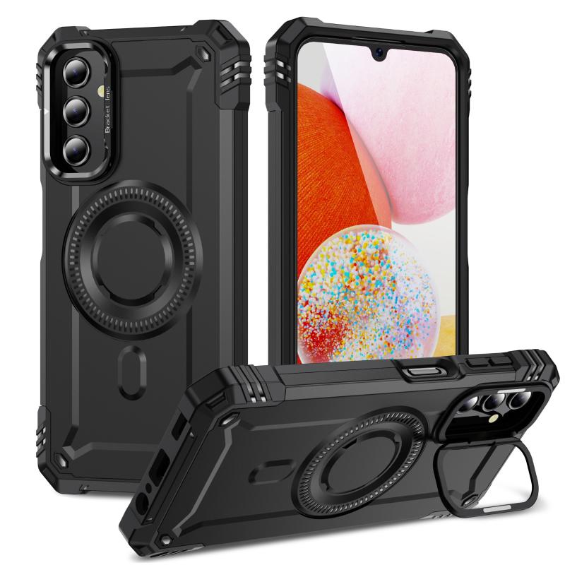 For Samsung Galaxy A14 5G / 4G Lens Holder MagSafe Phone Case(Black)