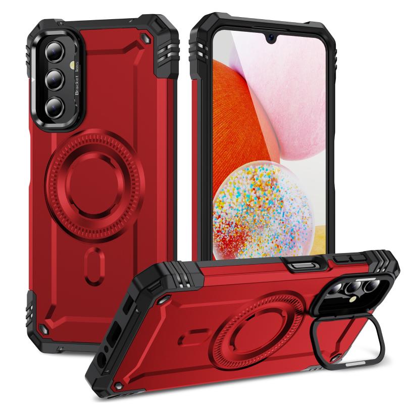 For Samsung Galaxy A14 5G / 4G Lens Holder MagSafe Phone Case(Red)