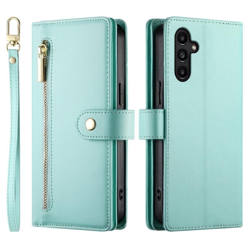 Για Samsung Galaxy A14 5G / 4G Nine Card-slot φερμουάρ πορτοφόλι τσάντα δερμάτινη θήκη τηλεφώνου (πράσινο μέντα)
